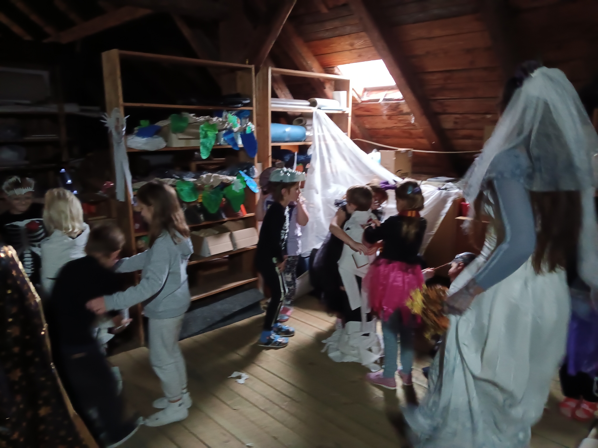 31. 10. :-) Hurá :-) Párty v družině :-) V kostýmech děti běhaly už od rána :-) A po obědě už rychle na školní půdu, kde na ně čekala strašidelná stezka a s ní i kostlivci, duchové, pavouci a hadi. Mezi pavučinami jsme si užili soutěž o nejhezčí mumii a nechybělo ani disko - trisko....prostě párty jak má být :-)