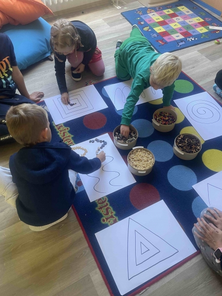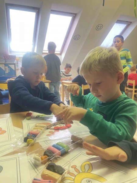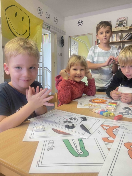 I v letošním školním roce pokračujeme v programu návštěv předškoláků v naší základní škole. Smyslem těchto setkání je usnadnit dětem přechod z mateřské školy do prostředí školy základní a podpořit jejich hladkou adaptaci. Úterní dopoledne 30.9. si pro budoucí školáky připravili program žáci 4. třídy. Na pěti stanovištích si předškoláci vyzkoušeli různé aktivity – procvičili si grafomotoriku a jemnou motoriku a naučili se i jednoduchou říkanku, která jim pomůže se správným úchopem tužky.