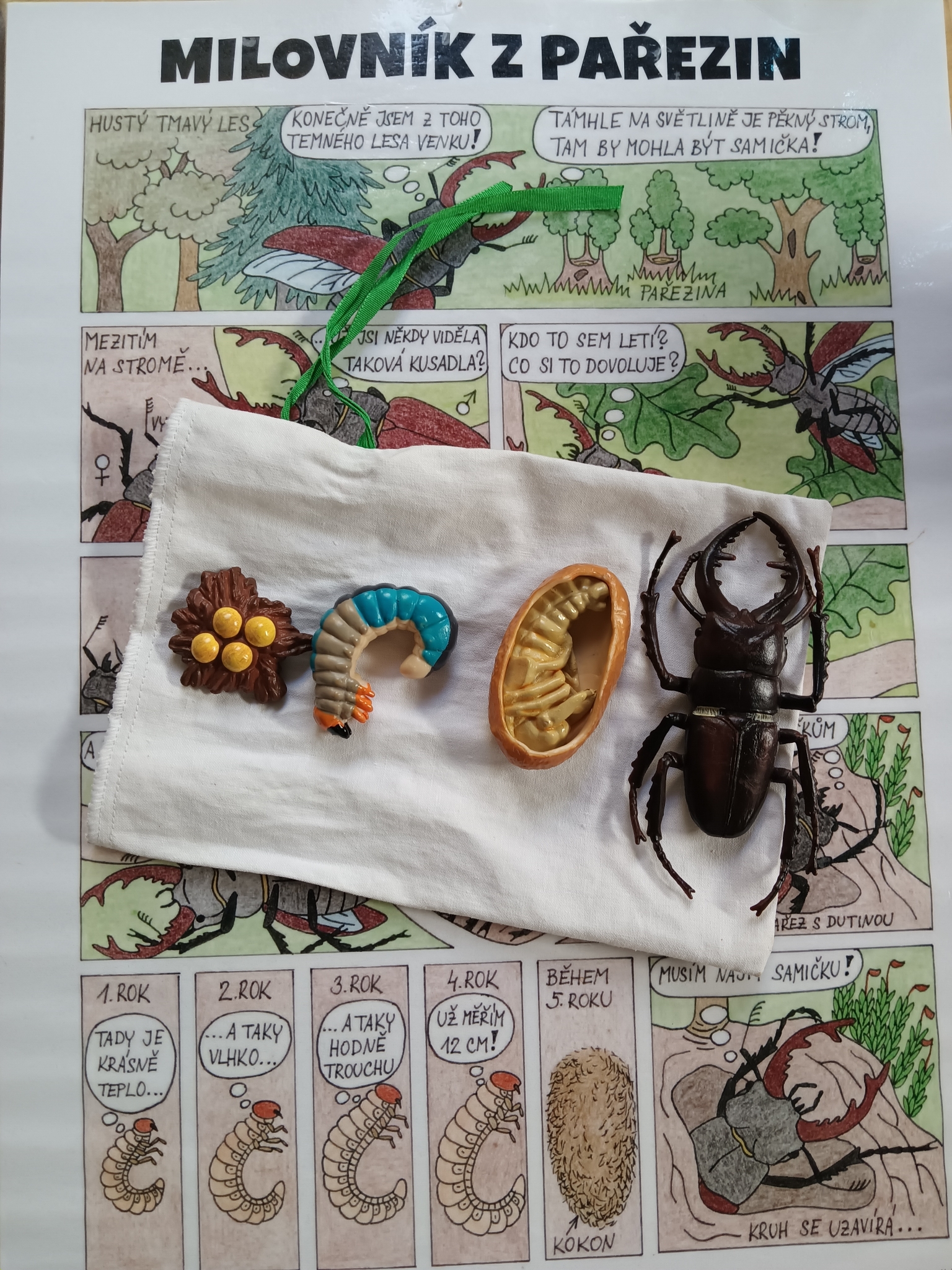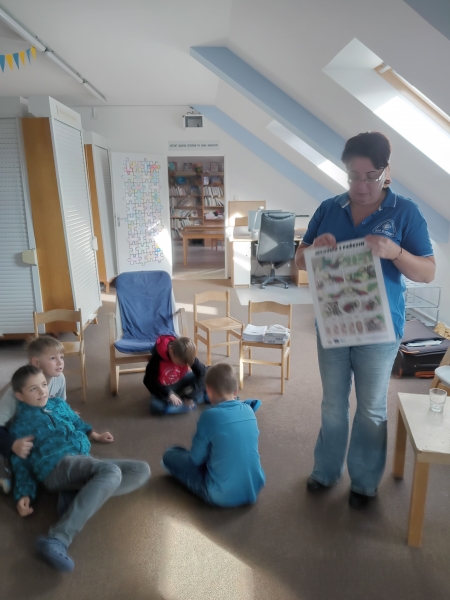 Ve středu 22. října nás v družině čekal výukový program a názvem Milovník z pařezin. Společně s broukem roháčem jsme zjišťovali, co všechno nám les poskytuje, jak dlouho roste a proč je důležité, aby v něm byl dostatek světla.
