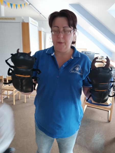 Během programu jsme prozkoumávali co všechno v našem lese žije, a dozvěděli jsme se mnoho zajímavostí ze života brouka roháče - například jak dlouho žije, k čemu používá svá velká kusadla a proč potřebuje k životu dostatek světla a mrtvého dřeva.