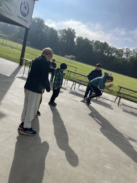 Žáci prvního stupně si vyzkoušeli různé disciplíny z programu Olympijský víceboj – skákali přes švihadlo, do dálky i snožmo, házeli kriketovým míčkem, basketbalovým míčem i medicinbalem, dělali kliky a leh-sedy, zkoušeli stabilitu při postoji čápa a také absolvovali T-běh.
