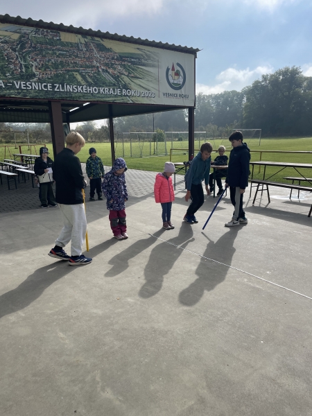 Žáci prvního stupně si vyzkoušeli různé disciplíny z programu Olympijský víceboj – skákali přes švihadlo, do dálky i snožmo, házeli kriketovým míčkem, basketbalovým míčem i medicinbalem, dělali kliky a leh-sedy, zkoušeli stabilitu při postoji čápa a také absolvovali T-běh.