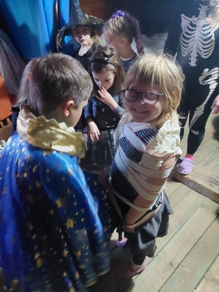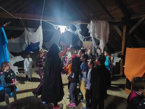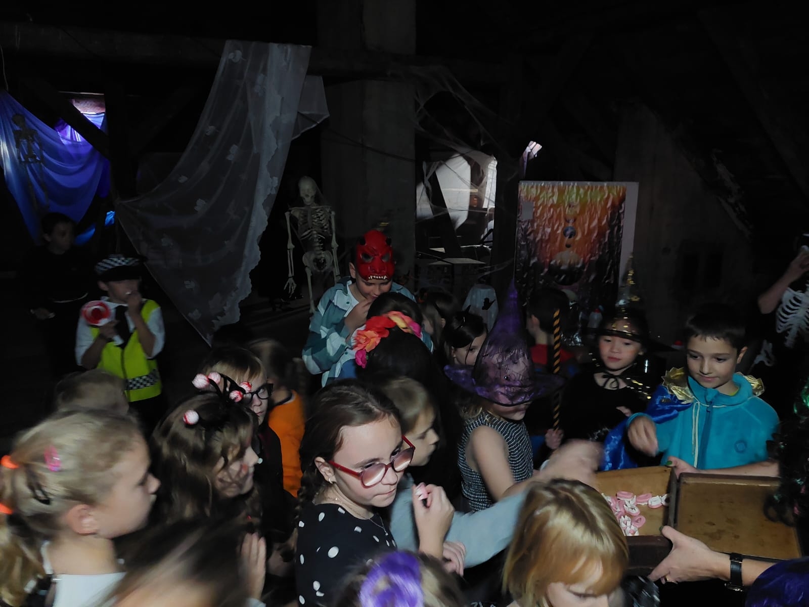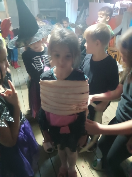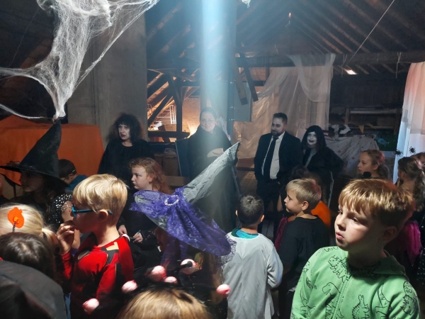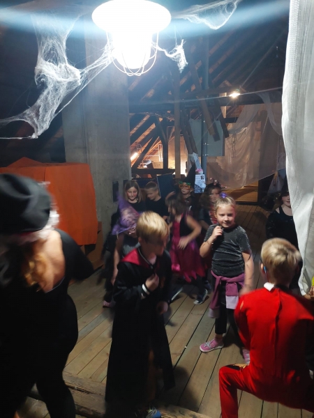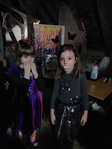 Letos nechyběla stezka s úkoly, pokusy s kostlivcem ani hra na mumie. O skvělou atmosféru se postarala halloweenská diskotéka, na kterou přišli i učitelé v kostýmech a společně s dětmi si zatančili halloweenský tanec :-)