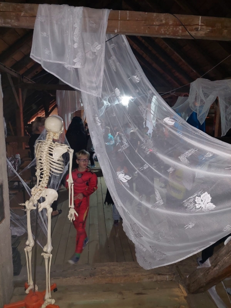 Halloween patří už tradičně k jedné z nejoblíbenějších akcí roku :-) a rozhodně to není jen obyčejná párty :-) letos dorazilo a velkým nadšením 46 dětí = 46 různých kostýmů :-) Celé odpoledne se odehrává na půdě, která se promění v tajemně strašidelný prostor plný světýlek, pavučin, koster a kostí a tajemných koutů :-)