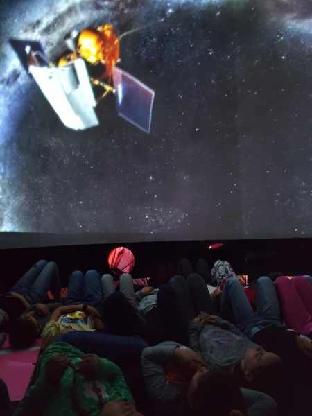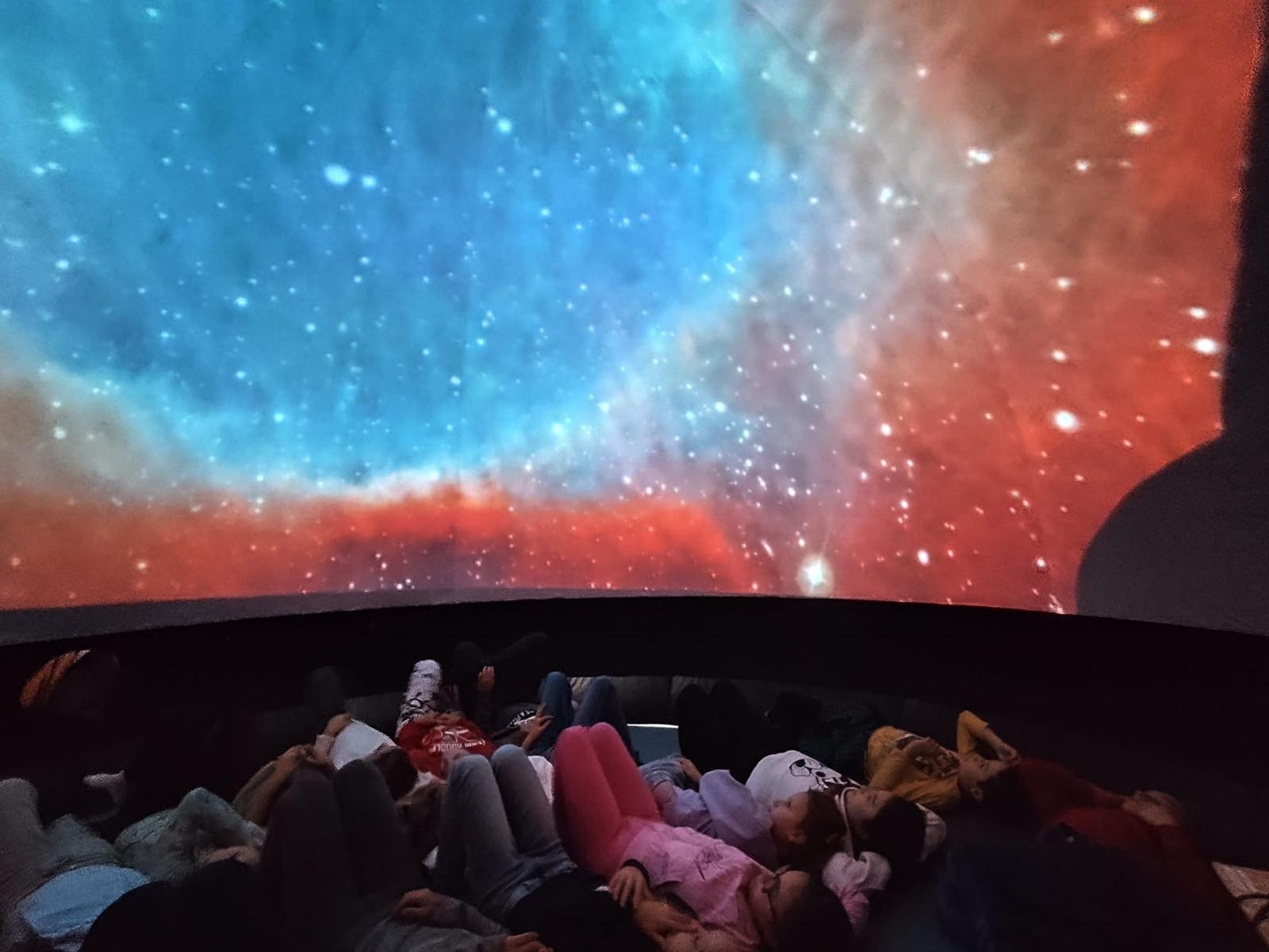 Ve středu 5. listopadu 2025 navštívilo naši školu mobilní planetárium, které pro žáky připravilo poutavé programy přizpůsobené jednotlivým ročníkům. Promítání probíhalo ve třídě, kde byla postavena velká nafukovací kopule, do které jsme vstupovali bez bot. Uvnitř nás čekala fascinující projekce na kopuli, která nás přenesla daleko za hranice běžné školní výuky.