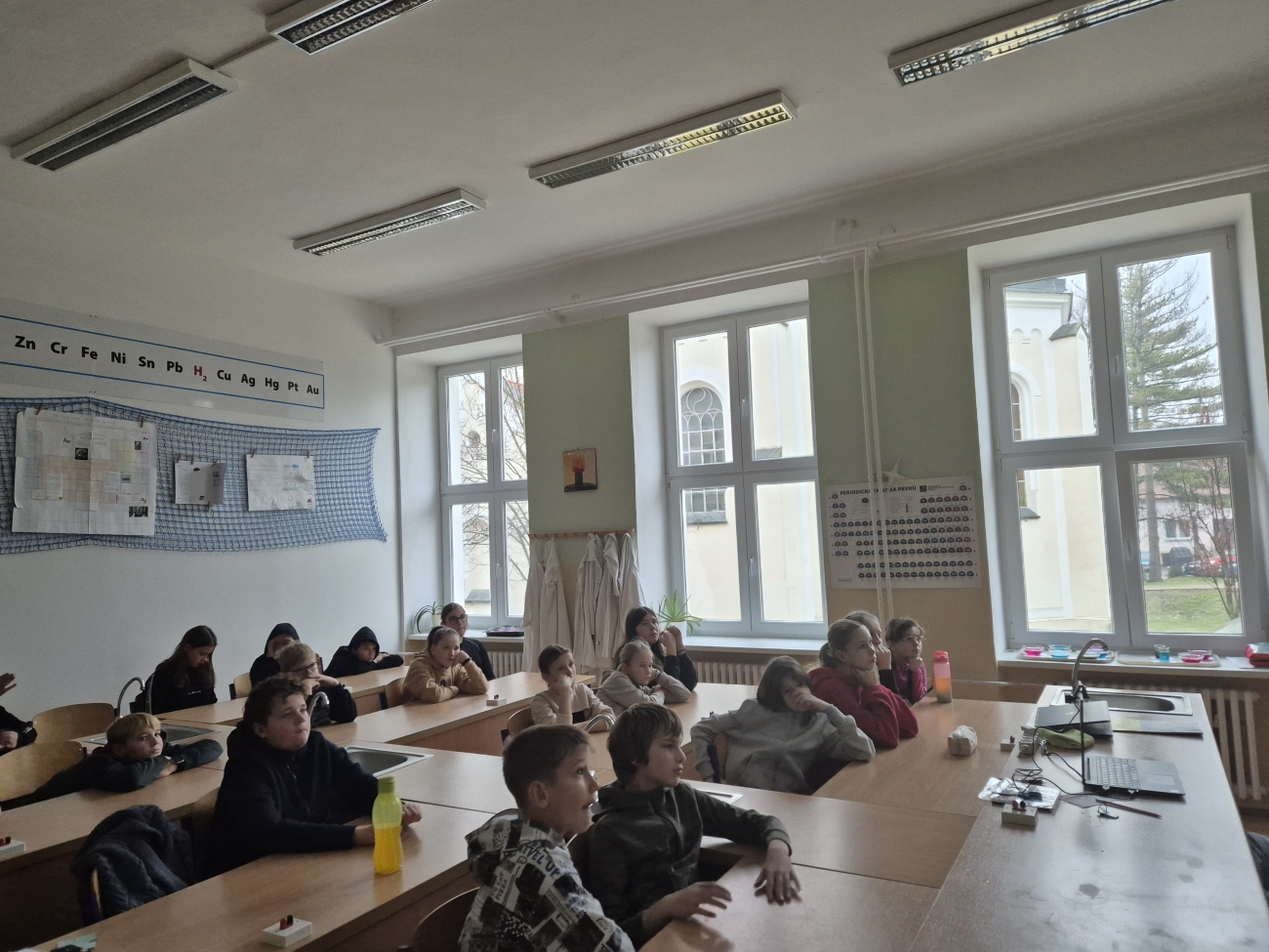 Lektor Bořek se svojí kolegyní Danou nám ukázali, jak fungují větrné elektrárny, solární panely i vodní elektrárny. Vysvětlil nám, proč jsou obnovitelné zdroje důležité a jak pomáhají chránit životní prostředí. Dozvěděli jsme se také, jak se elektřina dostane až do našich domovů a jak můžeme energii šetřit i my sami.