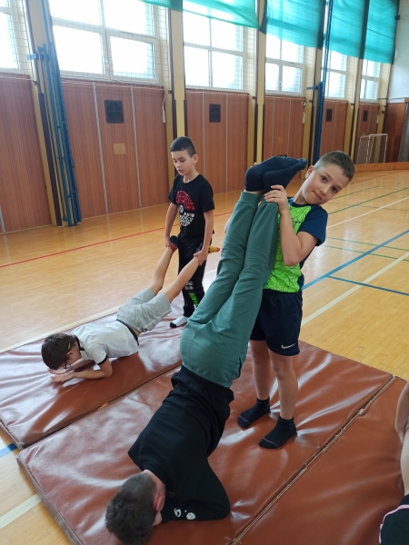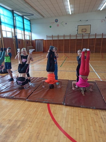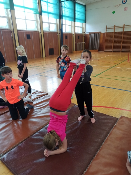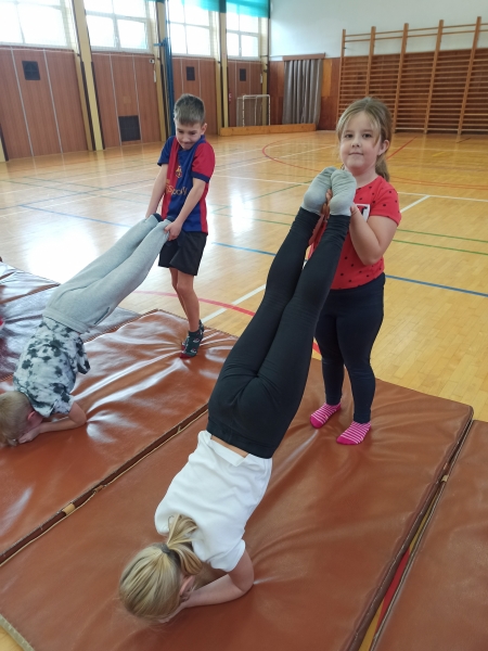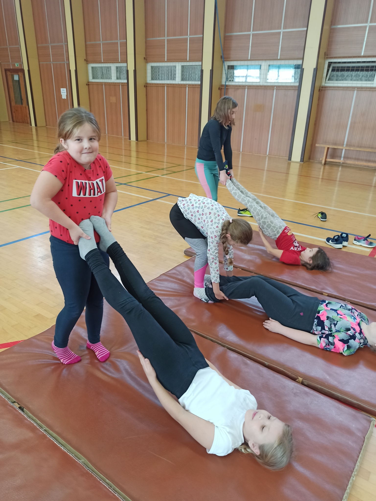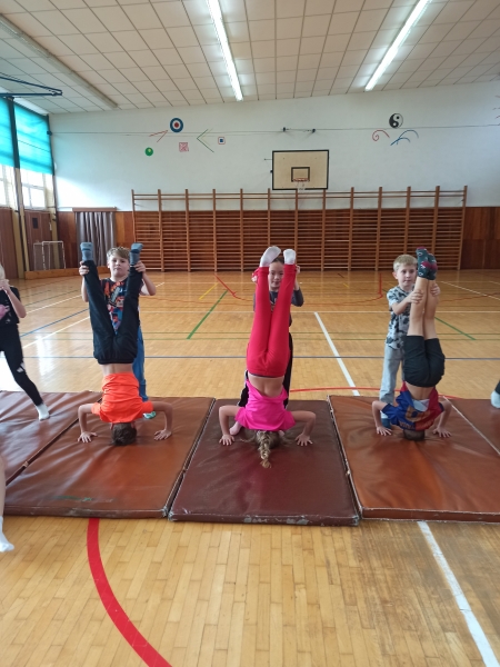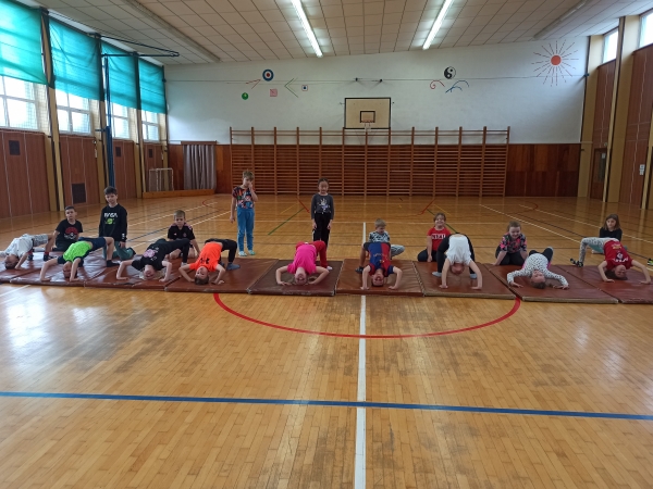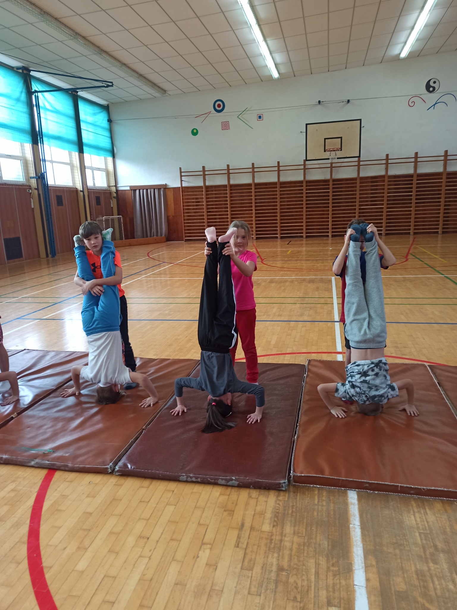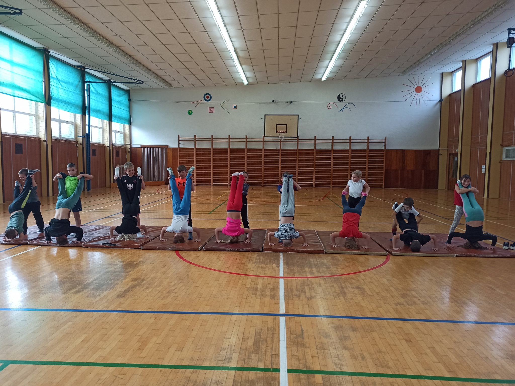 V hodinách TV jsme tentokrát zapojili nejen svaly, ale i pořádnou dávku odvahy. Stojky, mosty, planky – naši třeťáci zkrátka dokazují, že gravitace je jen doporučení. Makáme, protahujeme se, držíme rovnováhu… a občas i dech (hlavně pan učitel).