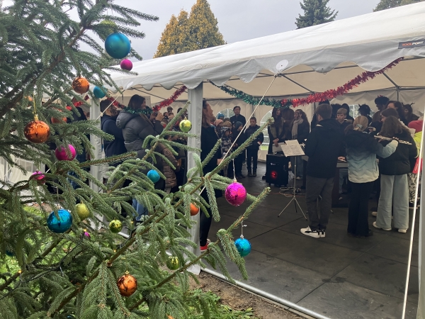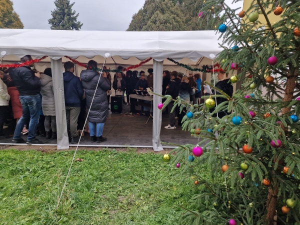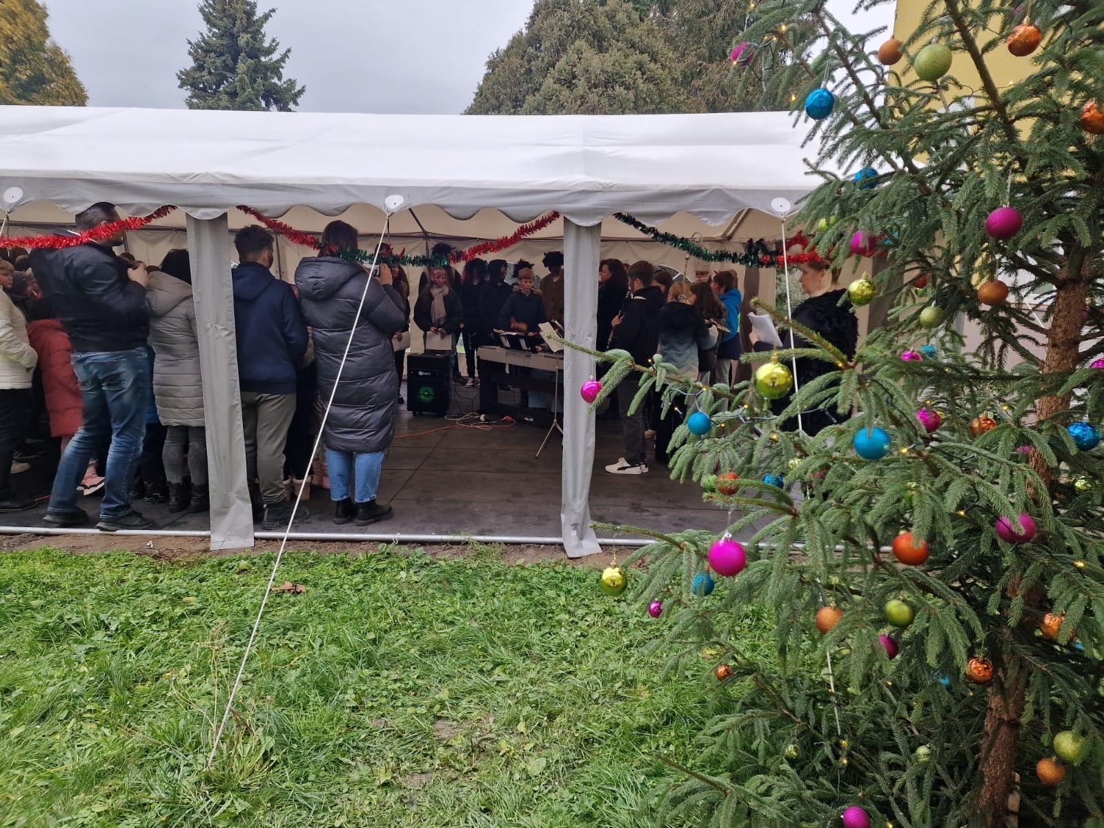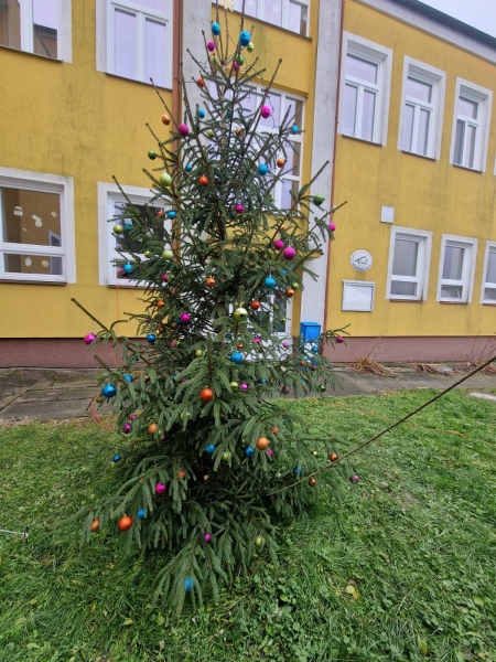 Tentokrát jsme se však nesešli uvnitř školy, ale vyrazili jsme ven, kde nás v příjemné atmosféře přivítal krásně nazdobený stromeček u venkovní učebny.