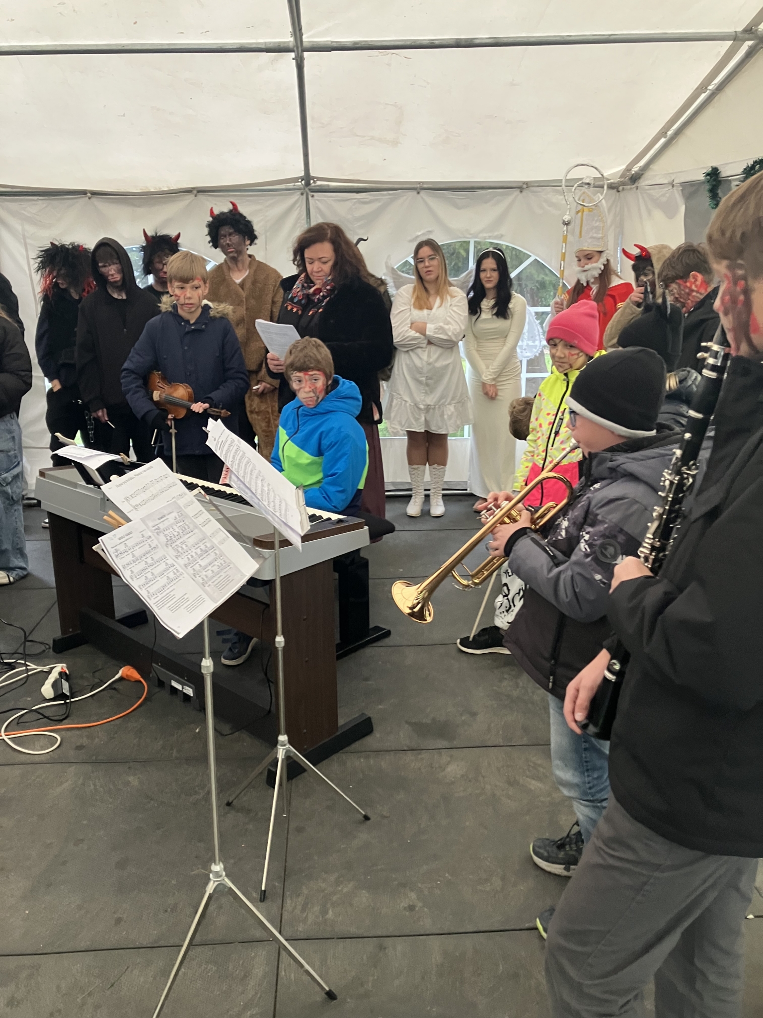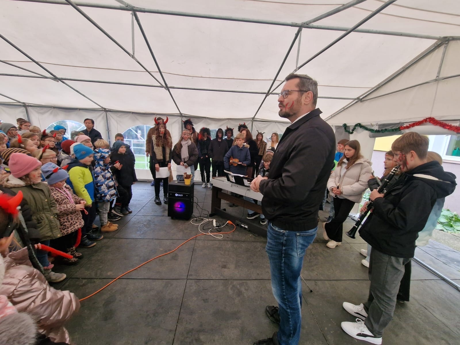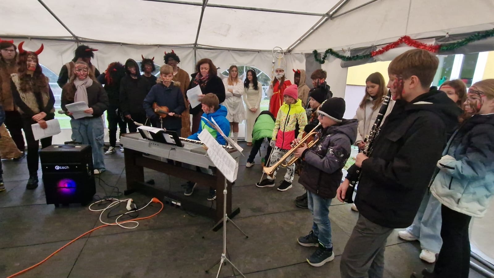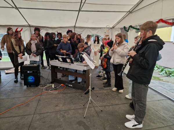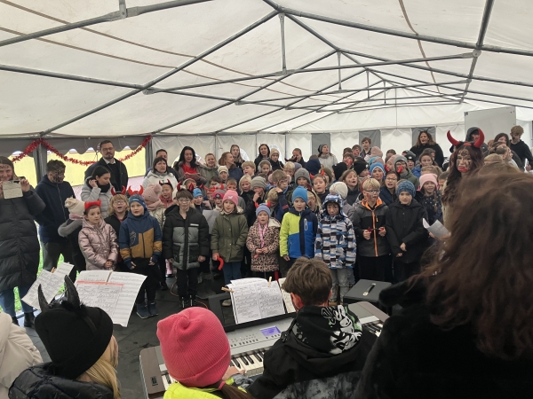 Celé zpívání se navíc konalo v den, kdy školou také symbolicky prošel Mikuláš. Díky našim deváťákům, kteří vytvořili ještě kouzelnější atmosféru. V kostýmech Mikuláše, andělů i čertů se připojili k programu a celé dopoledne krásně obohatili.