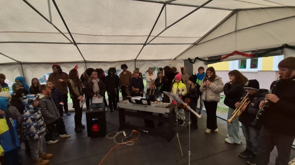 O nezapomenutelný hudební doprovod se postarali naši šikovní spolužáci navštěvující ZUŠ. Společně s paní učitelkou Říhovou písně nacvičili a jejich vystoupení dodalo celé akci kouzelnou atmosféru – za to jim patří velké poděkování.