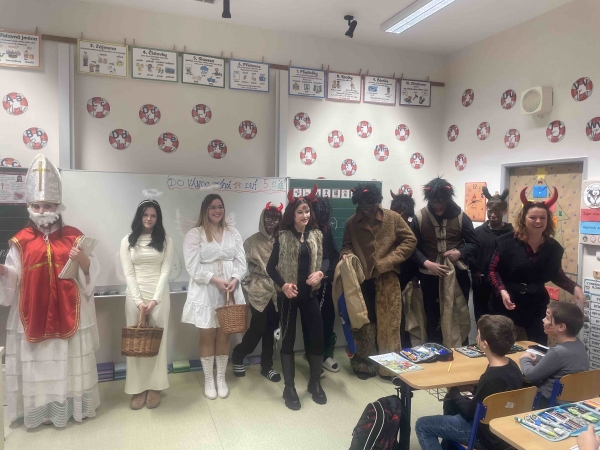 V pátek 5. prosince k nám do třídy zavítala vzácná návštěva – Mikuláš, andělé a čerti. Atmosféra byla napínavá, někteří žáci měli chvíli opravdu „namále“, ale nakonec to dopadlo dobře – čerti si nikoho neodnesli.