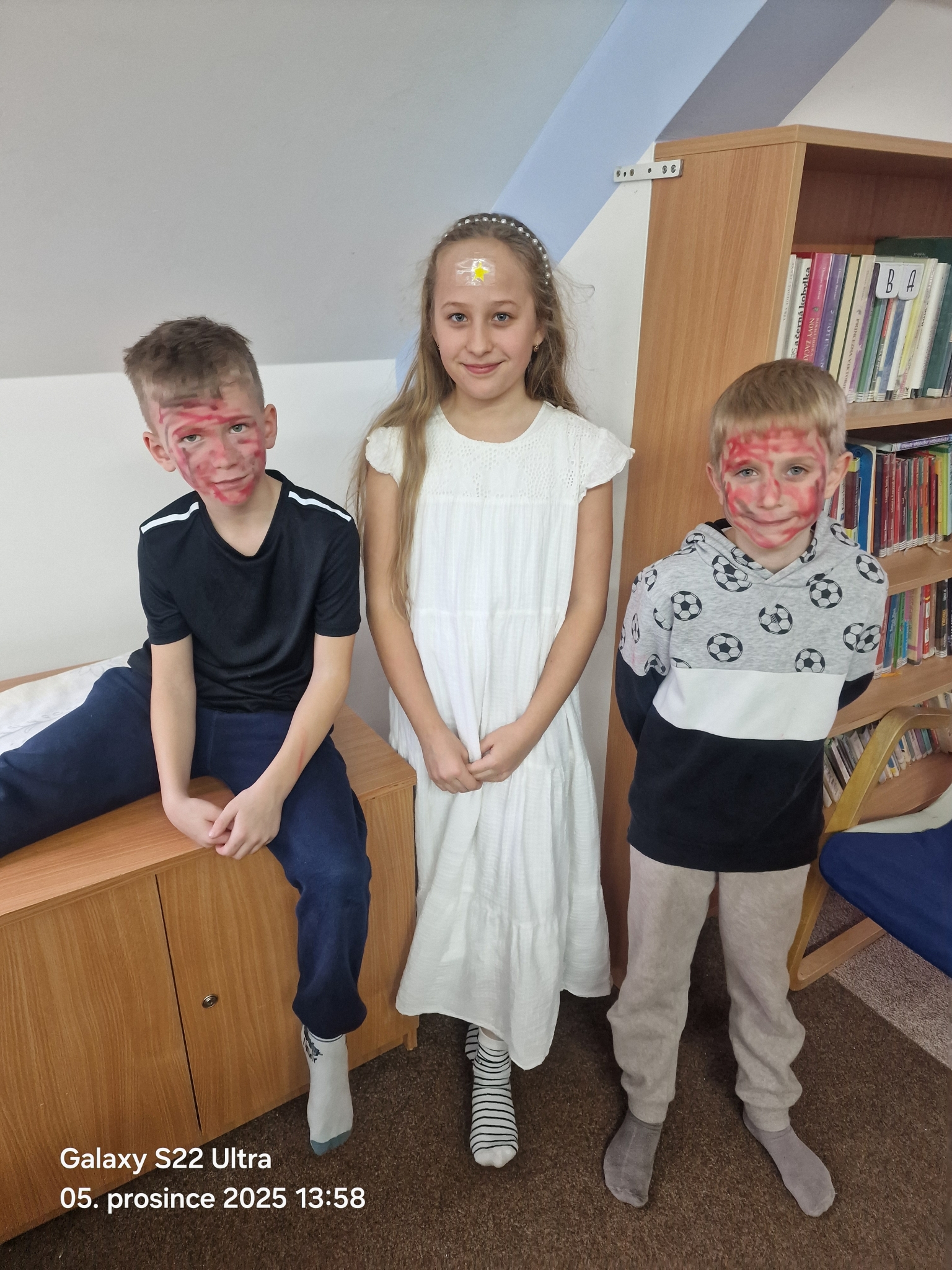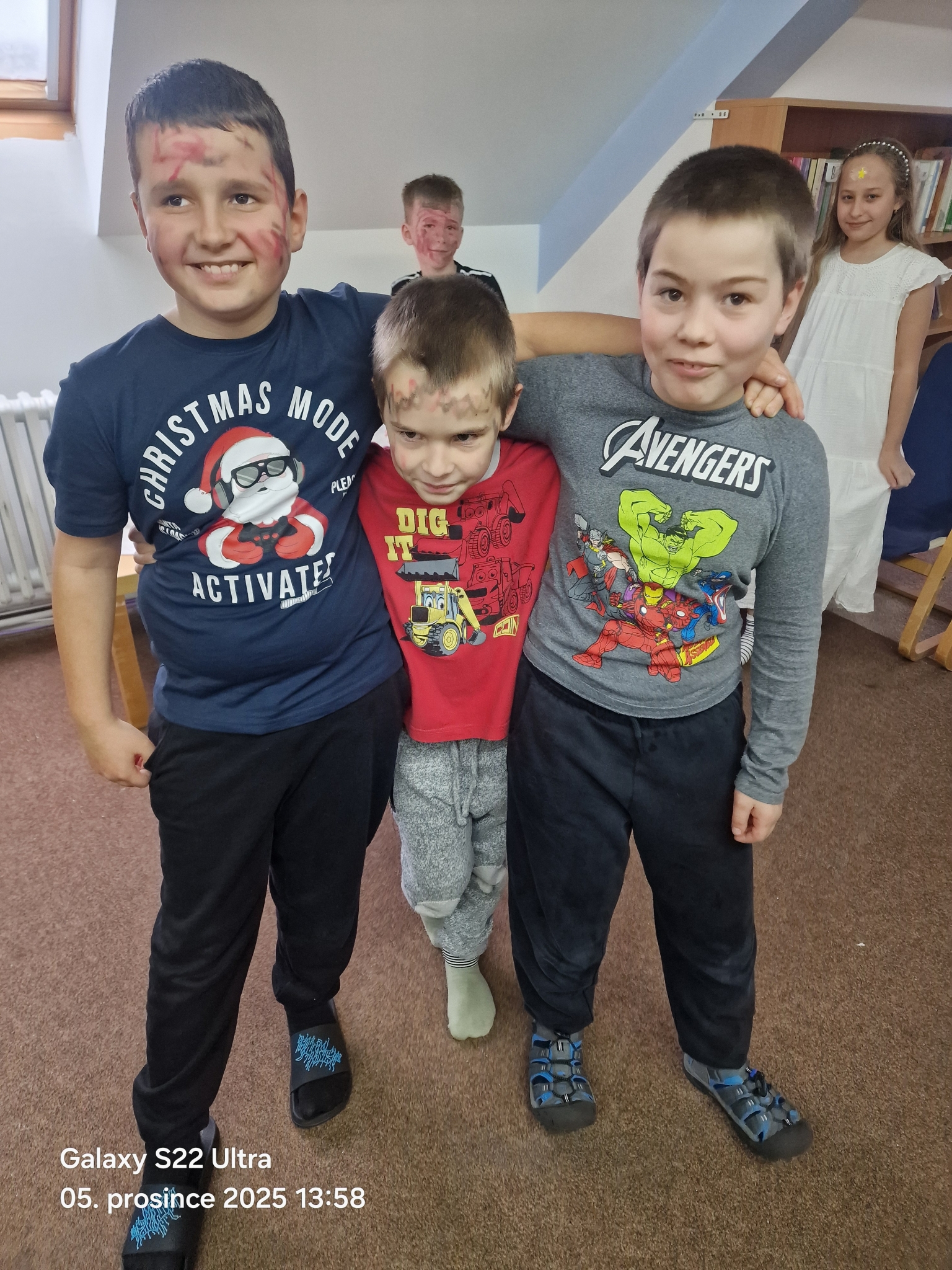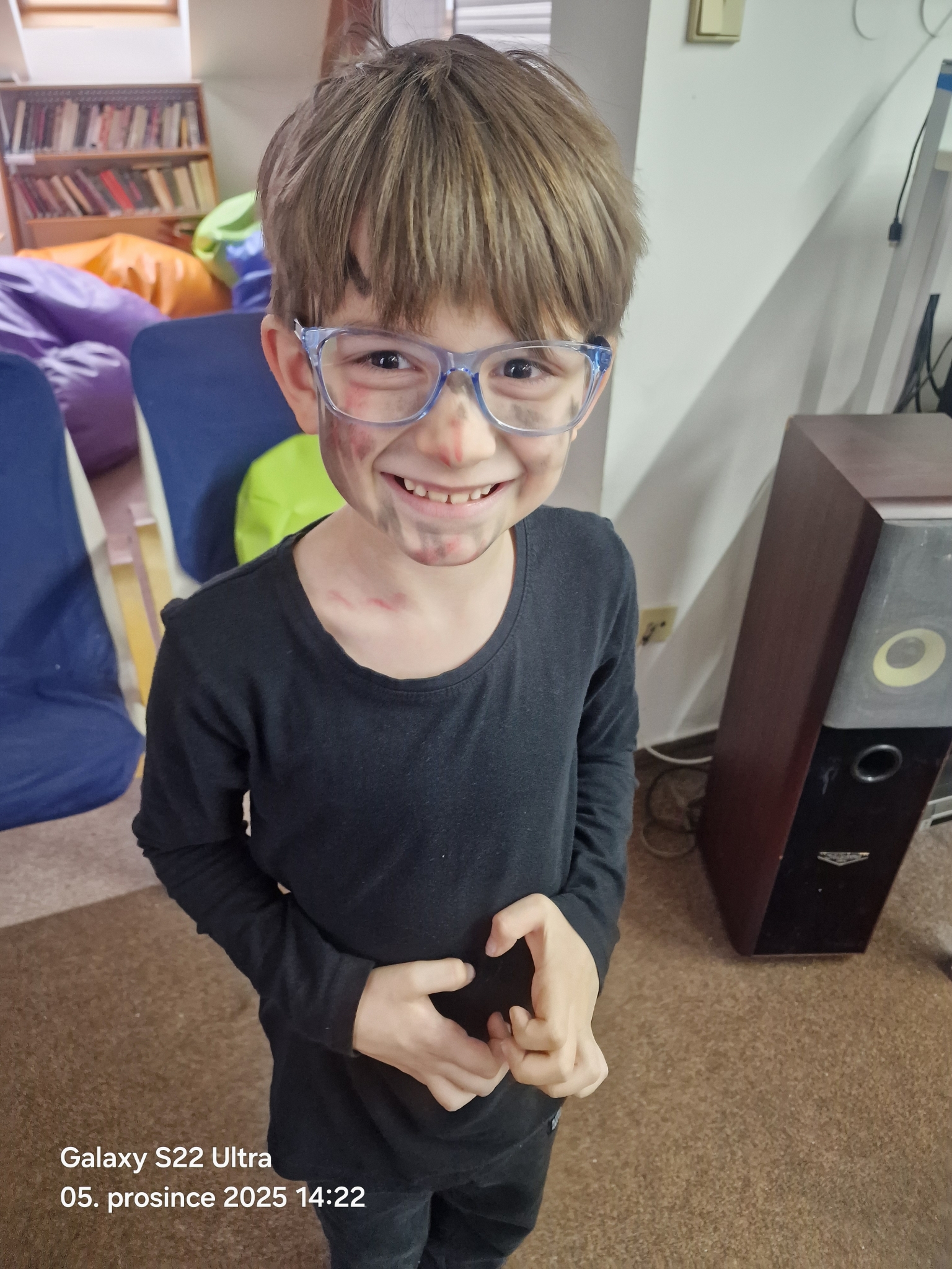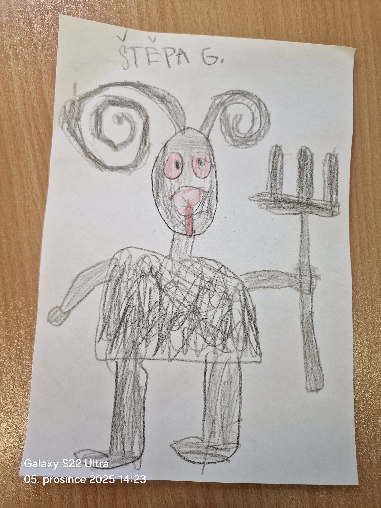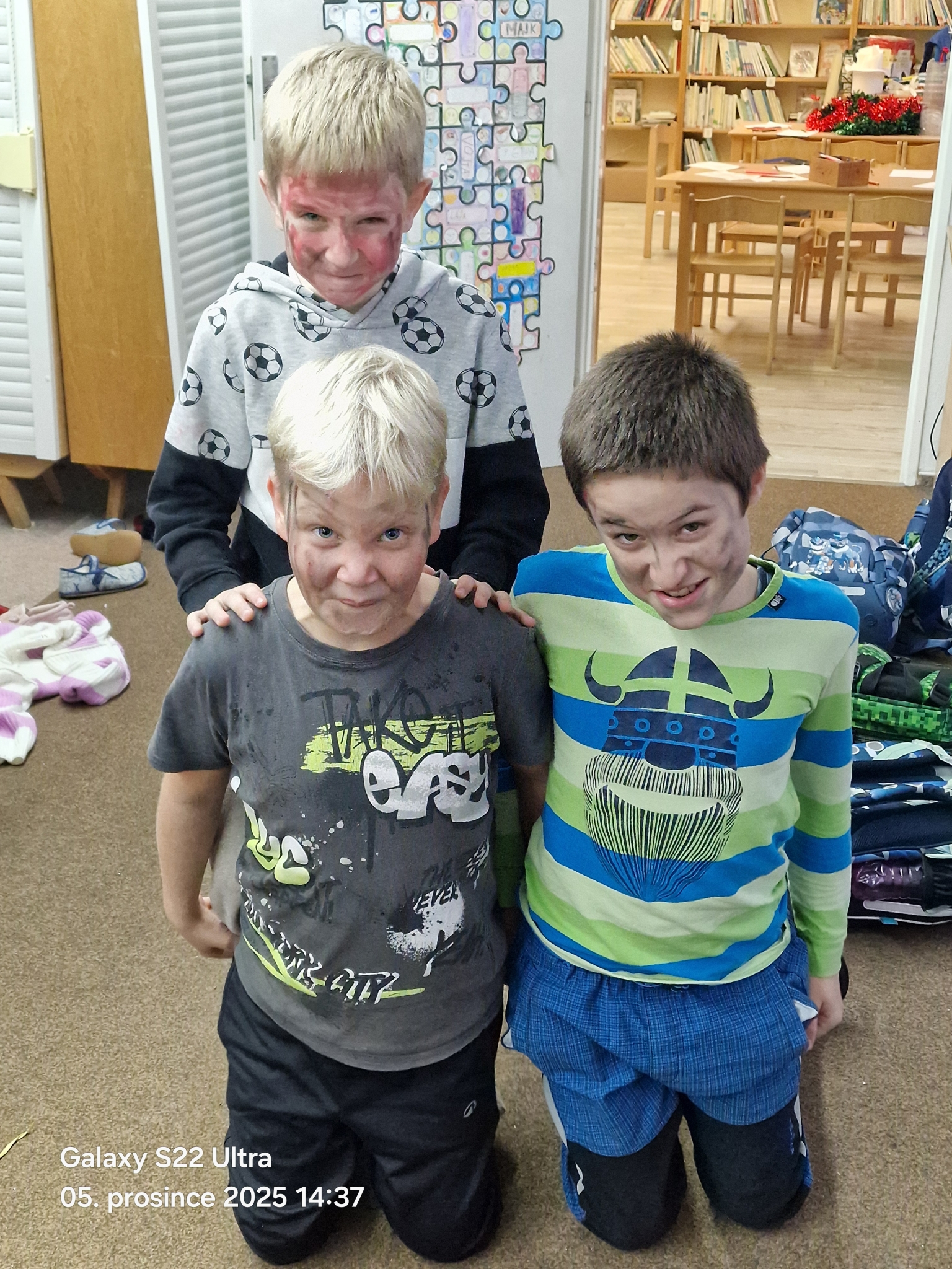 Odpoledne se děti sešly v družině, kde na ně čekal pořádný čertovský rej. Hned na úvod se představili malí čertíci se svými originálními čertovskými jmény, která si pro tuto příležitost připravili. Následovaly soutěže - skákání v pytli, které s "kopýtky" zvládli levou zadní, volba nejkrásnějšího čertího obličeje a mnoho dalších her, při nichž nechyběl pohyb, smích a pořádná porce zábavy.
