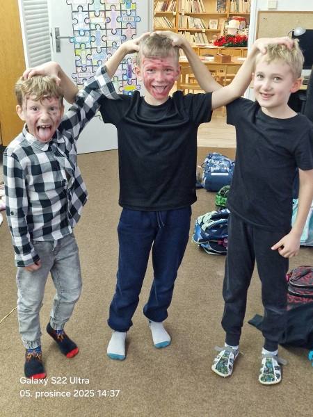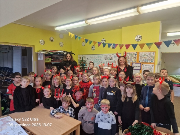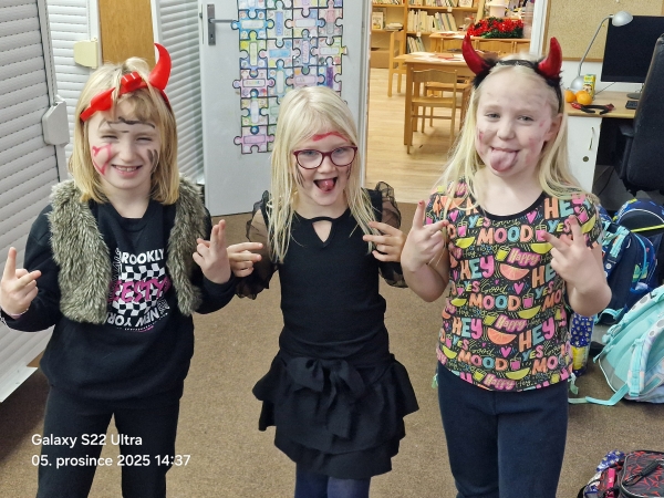 Pátý prosinec už tradičně patří Čertovskému reji :-) Už od rána panovala ve škole pekelně veselá nálada. Třídy navštívil Mikuláš se svým andělským i čertovským doprovodem, který odstartoval den plný radosti i napínavých okamžiků :-)