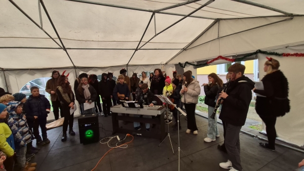 Před obědem nás čekalo školní vánoční zpívání. Sešli jsme se ve venkovní učebně společně s celou školou a zazpívali si známé koledy. Atmosféru doplnila i krásná recitace, která dodala celé akci slavnostní nádech.
