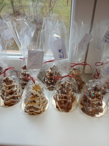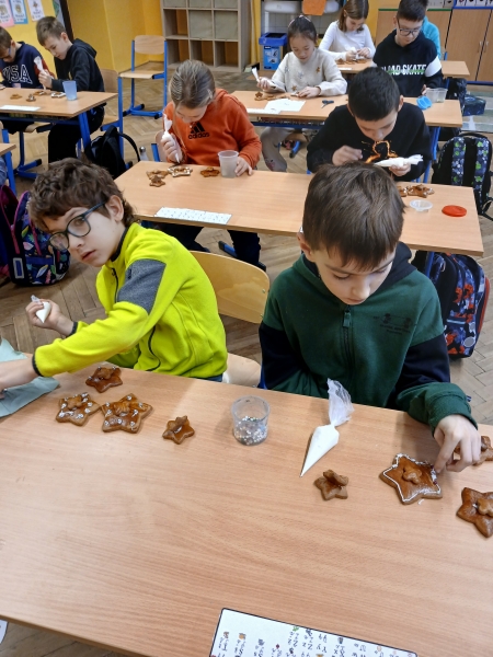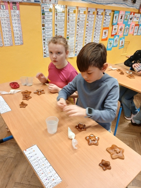 V předvánočním čase jsme si ve třídě připravili speciální projekt, který spojil zábavu s učením. Děti procvičovaly učivo matematiky a českého jazyka hravou formou – za splněné úkoly získávaly písmena, ze kterých pak složili slovo. Úkoly byly pestré: počítání, jazykové hádanky i logické úlohy, které děti nadšeně řešily. Součástí projektu byla také kreativní dílna, ve které jsme vyráběli stromečky z perníku. Děti si užily nejen tvoření, ale i vůni Vánoc, která se linula celou třídou. Společně jsme si tak vytvořili krásnou sváteční atmosféru.