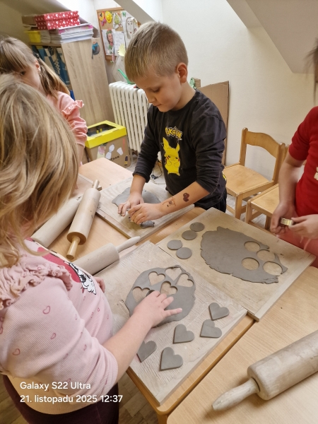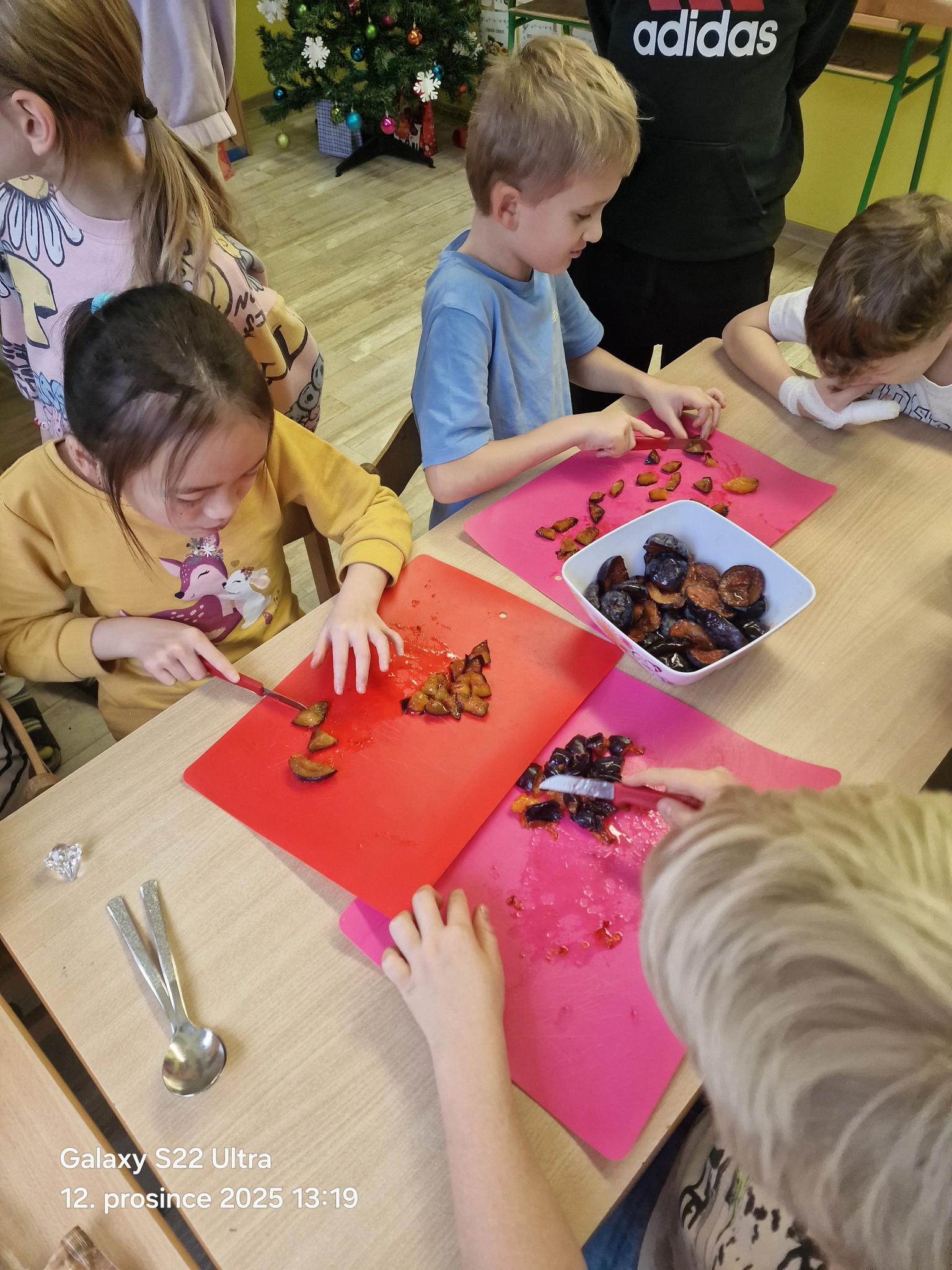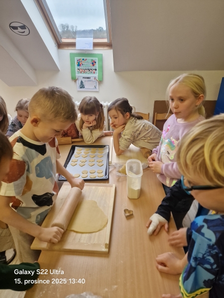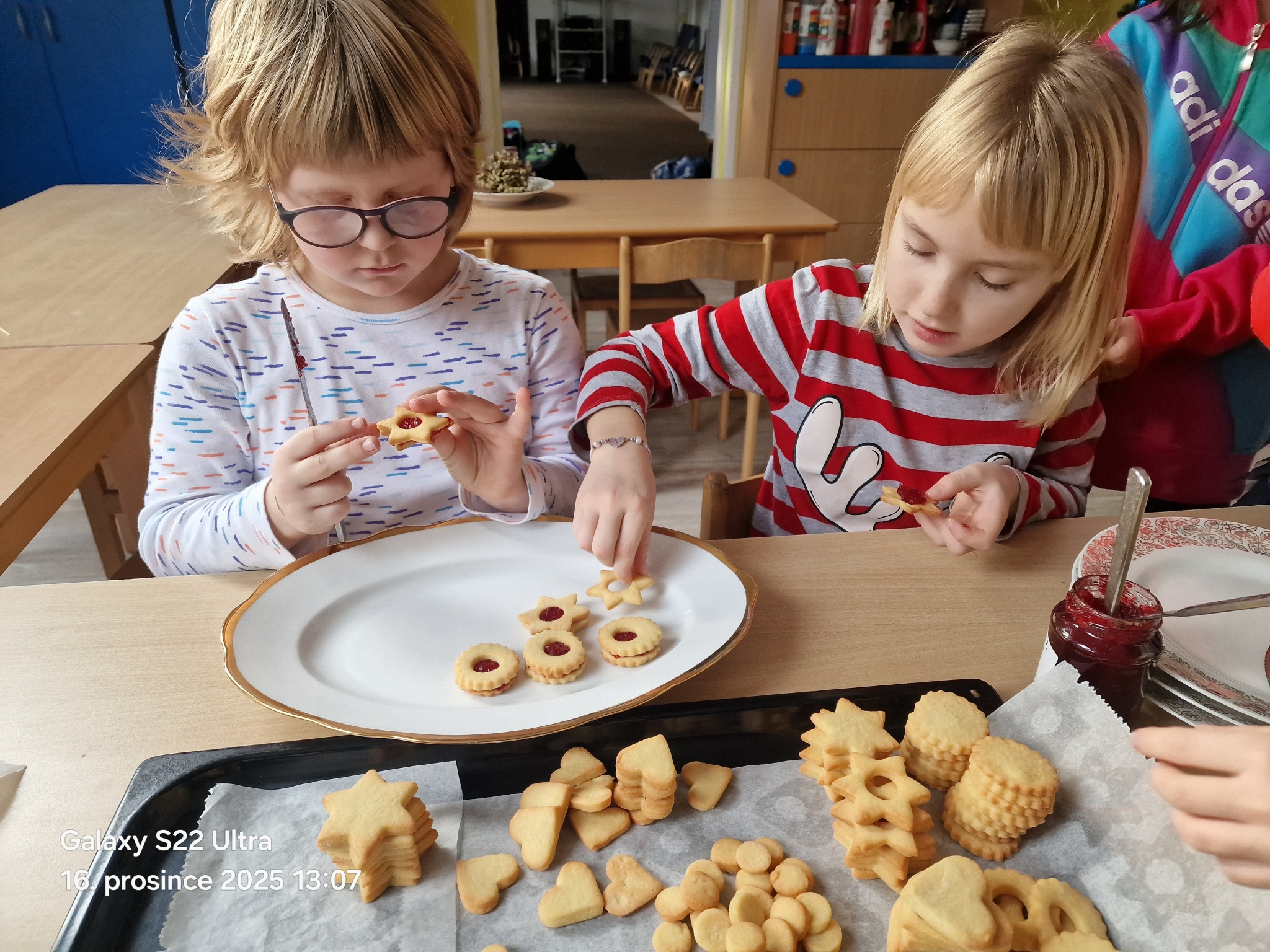Nechyběly ani oblíbené adventní činnosti - děti si s nadšením připravily pečený čaj a s velkou pečlivostí pekly linecké cukroví.