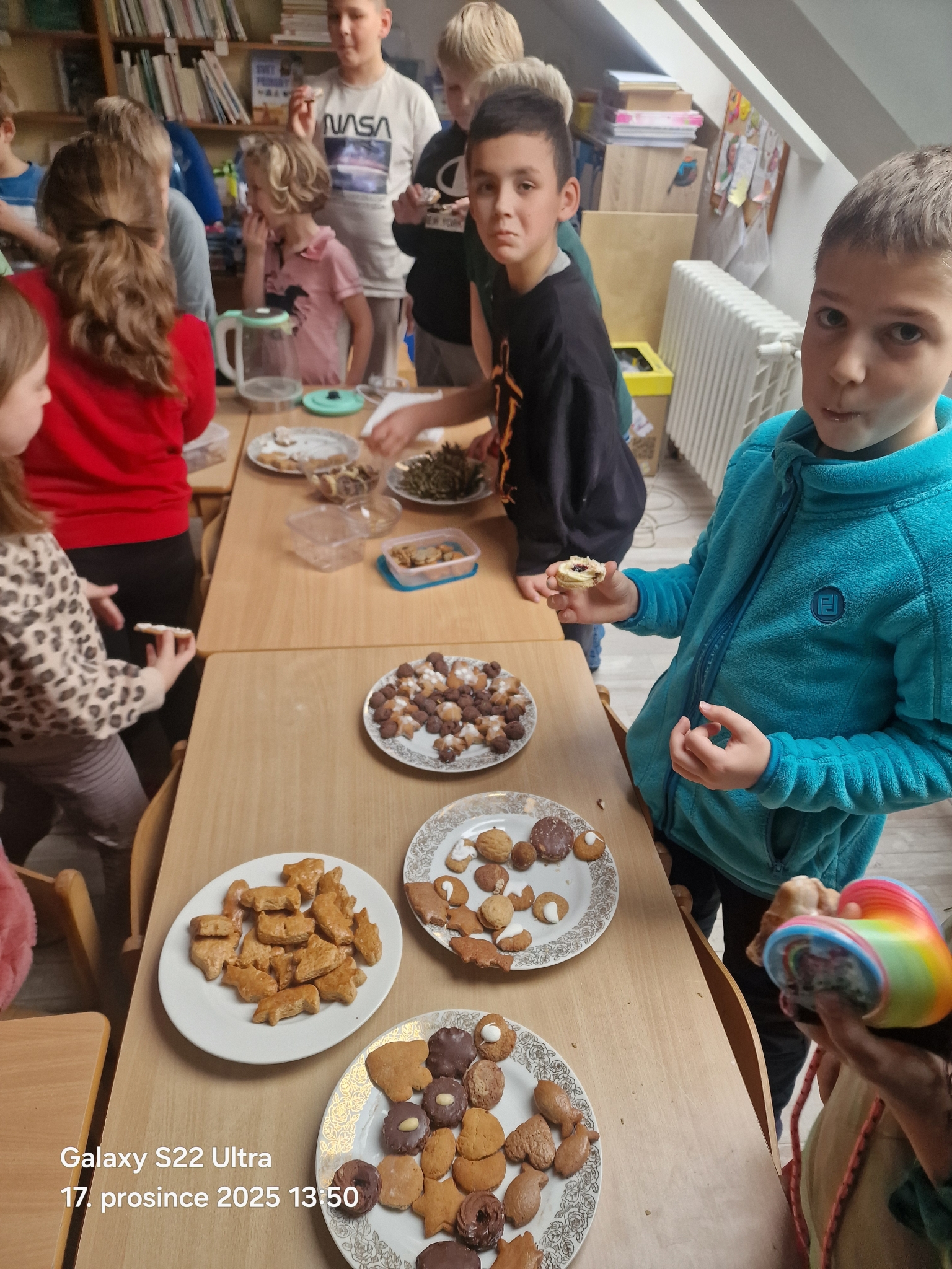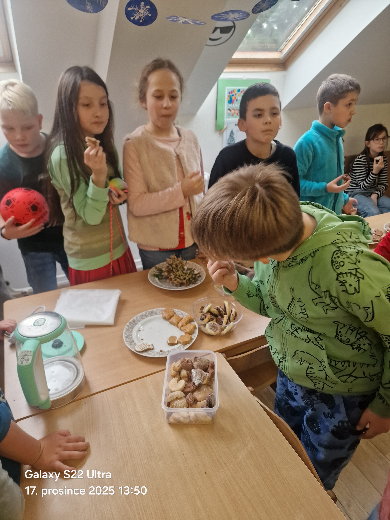 Vrchol celého adventního období přišel právě tehdy, když do družiny zavítal Ježíšek a přinesl opravdu bohatou nadílku. Děti si mezi sebou rozdaly dárečky, vychutnaly si vánoční cukroví a vše zapily voňavým pečeným čajem. Celé odpoledne se neslo v příjemné sváteční atmosféře :-)
