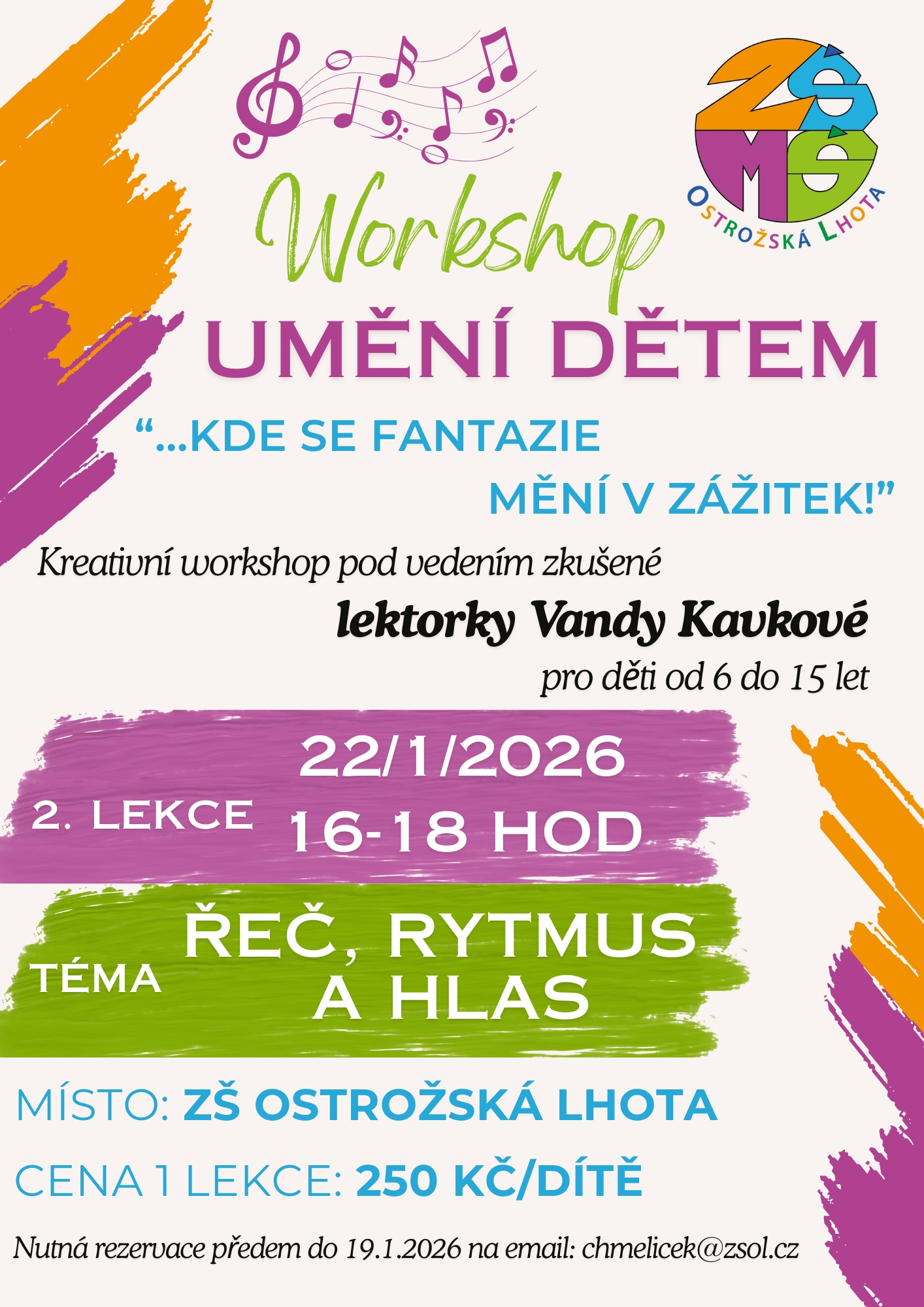 Ve čtvrtek 22.1. 2026 od 16 hodin proběhne náhradní workshop s Vandou Kavkovou na téma Řeč, rytmus a hlas.