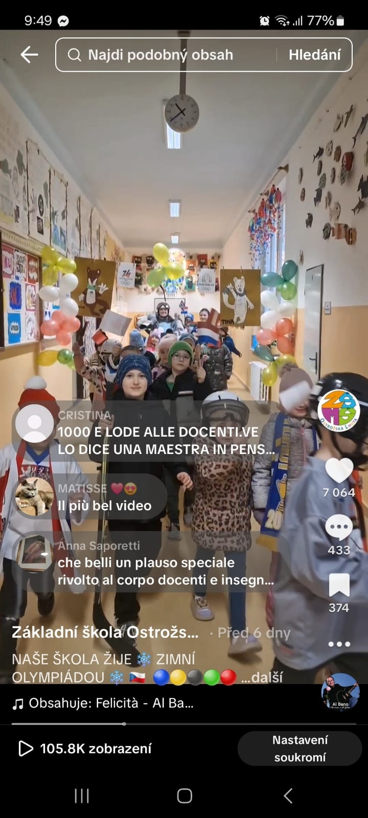 K dnešnímu dni (11. 2.) bylo video zveřejněné na Facebooku, TikToku a Instagramu zhlédnuto více než 234 000krát a získalo přes 12 000 „lajků“. Velkou radost nám dělají zejména nadšené komentáře z Itálie, ale i z dalších koutů světa (viz fotografie).