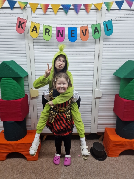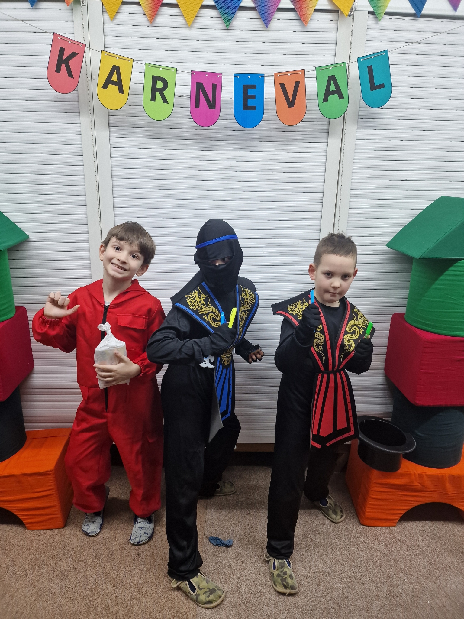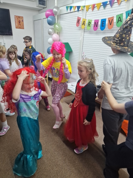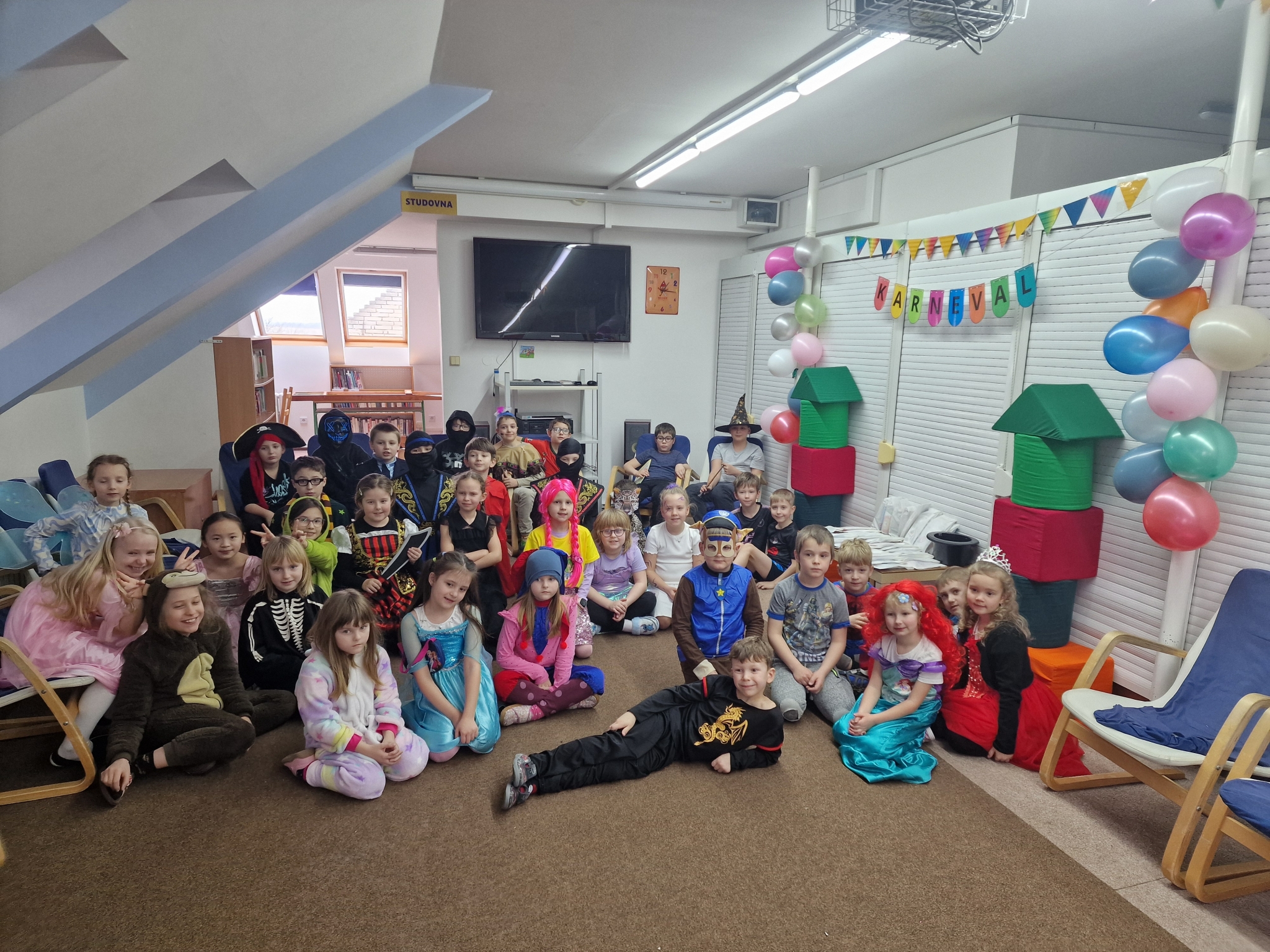 Ve středu 11. února bylo ve škole od samého rána veselo :-) Chodbami i třídami na prvním stupni se pohybovaly princezny, superhrdinové, zvířátka, sportovci i další nápadité masky. Děti si karnevalový den užívaly naplno - v kostýmech se i učily a odpoledne už hurá do družiny, kde vypukly pravé karnevalové radovánky :-)