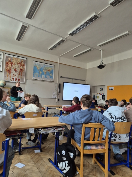 Ve středu jsme měli program s paní psycholožkou. Pomocí zajímavých aktivit jsme objevovali nové emoce, sdíleli vlastní zkušenosti a zamýšleli se nad tím, jak s nimi pracovat. Na závěr jsme si povídali o tom, jak hudba ovlivňuje naše prožívání a jaké pocity v nás různé melodie vyvolávají.