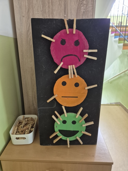 Na chodbách na nás čekala různá stanoviště s úkoly, hrami i pracovními listy. Učili jsme se emoce poznávat, pojmenovat a přemýšlet o tom, kdy a proč je prožíváme. Každý den jsme přišli oblečeni v jiné barvě, která symbolizovala různé pocity, a společně jsme tak vytvořili pestrou a přátelskou atmosféru.