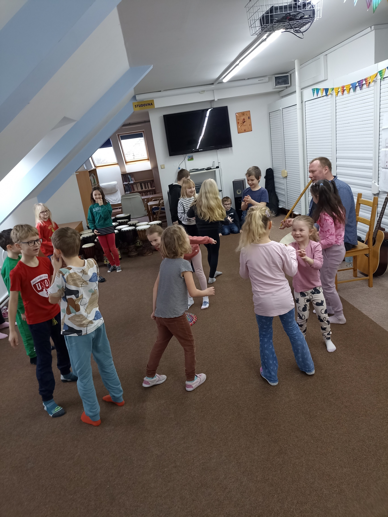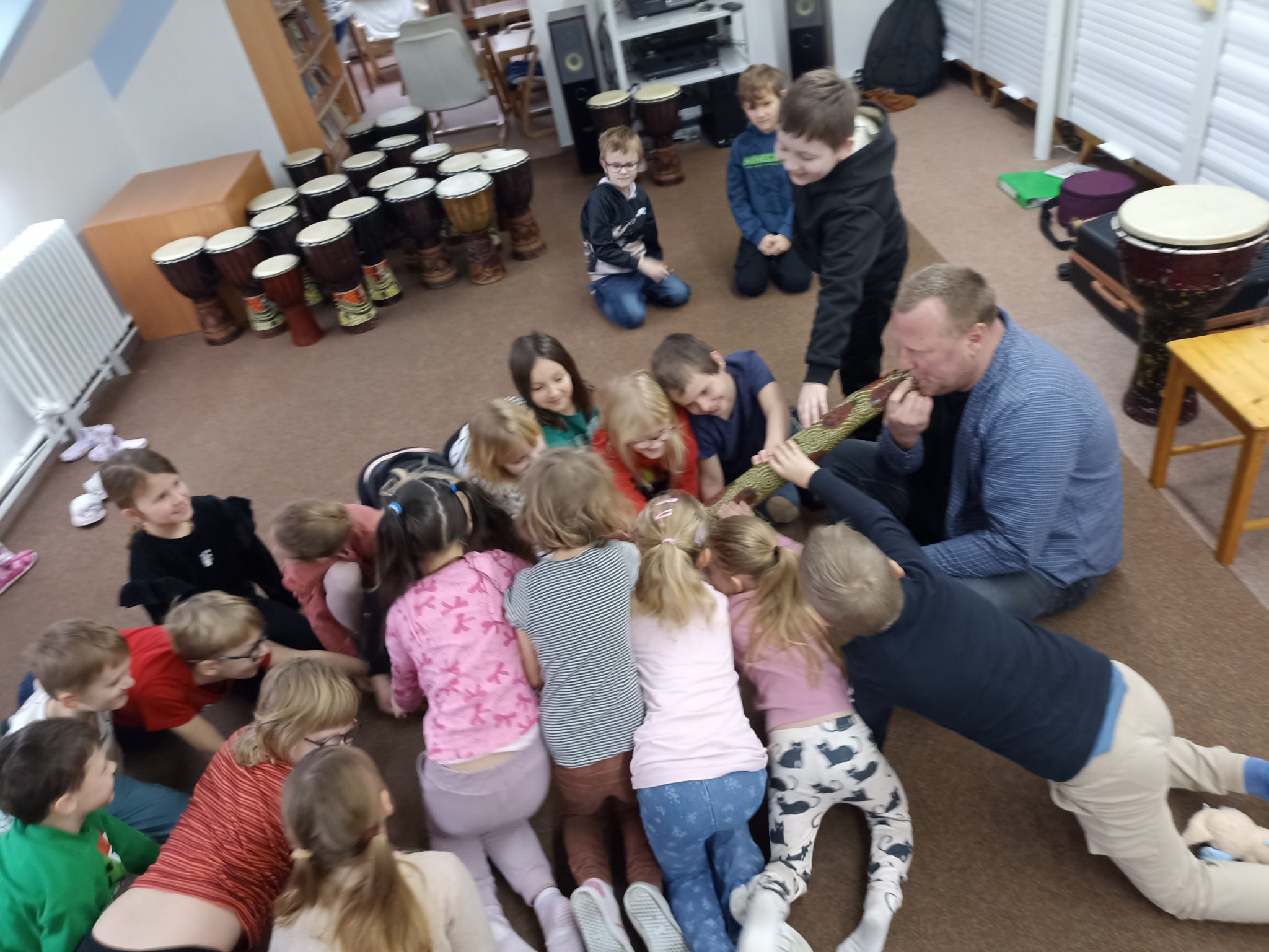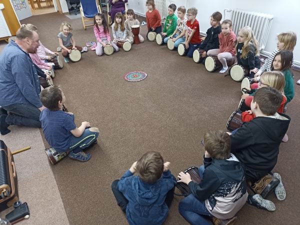 Děti se během programu vydaly na hudební cestu kolem světa a poznávaly různé kultury prostřednictvím rytmu, pohybu a zpěvu. Vyzkoušely si hru na africké bubny a objevily kouzlo australského nástroje didgeridoo. Nechyběly ani pohybové a rytmické hry, při kterých bylo potřeba zapojit nejen tělo, ale i spolupráci a pozornost.