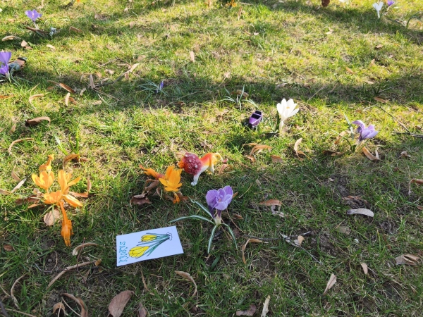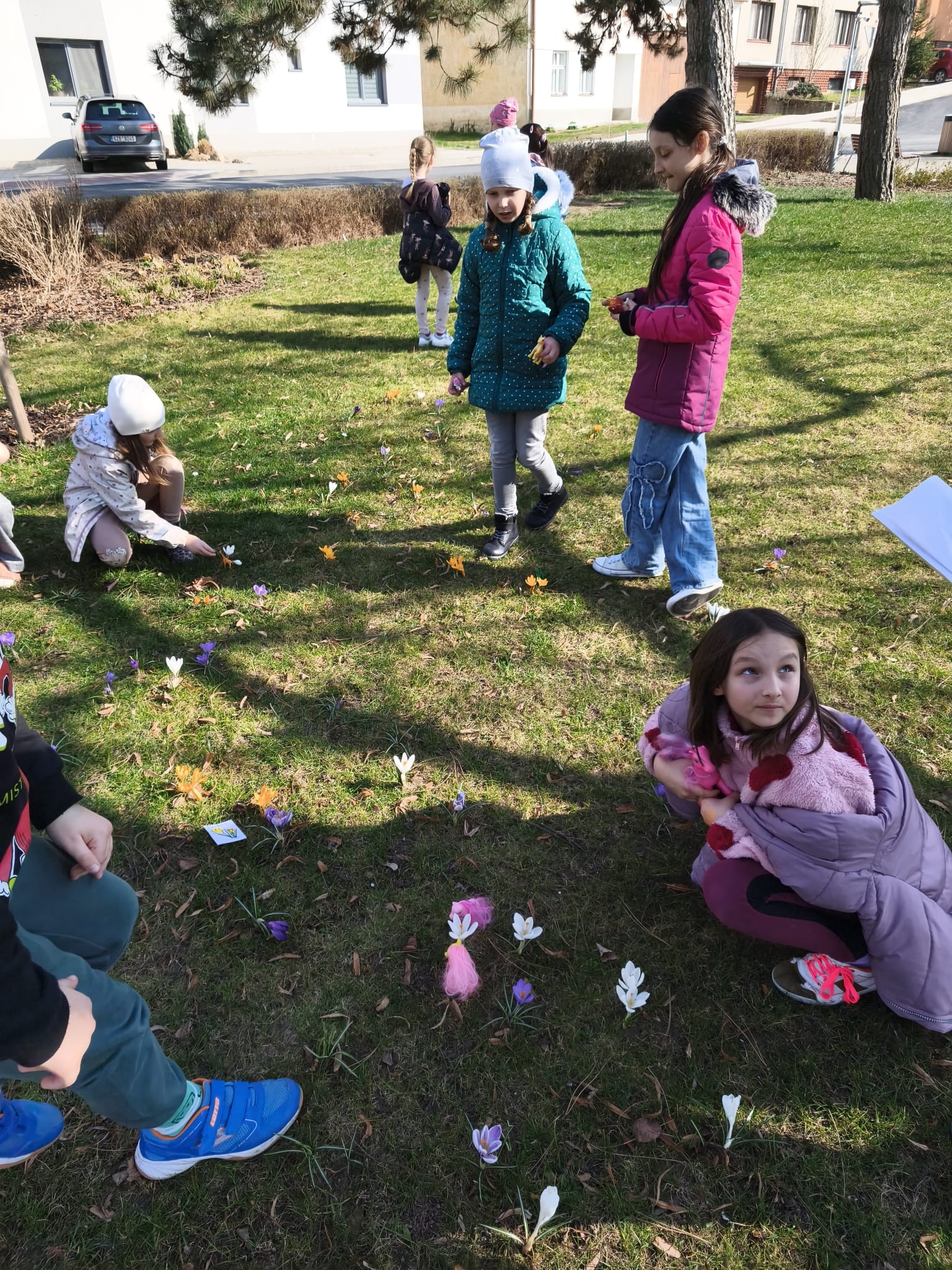 Jaro klepe na dveře a my jsme se rozhodli mu jít naproti po svém :-) Pustili jsme se do bádání s názvem "Hledáme jarní veselé barvičky " :-) Vyrazili jsme ven, kde jsme v zahrádkách u domů objevovali první jarní květiny a učili se je poznávat.
