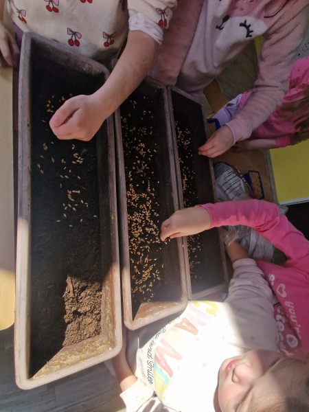 Na závěr týdne jsme si kousek jara přenesli i do družiny. Zasadili jsme si jarní osení do truhlíků a teď už budeme sledovat, jak nám pod rukama poroste naše malé jarní pole :-)