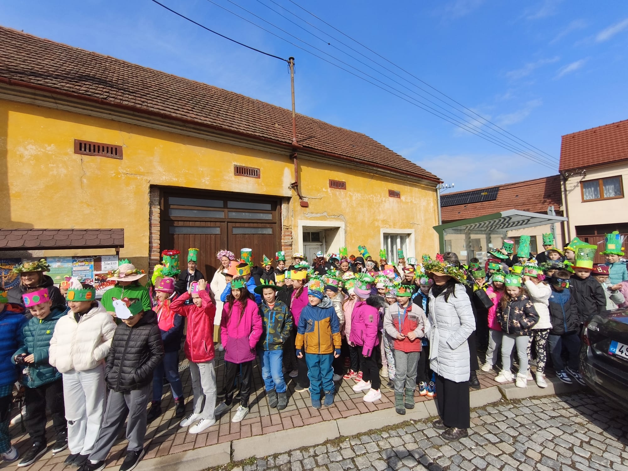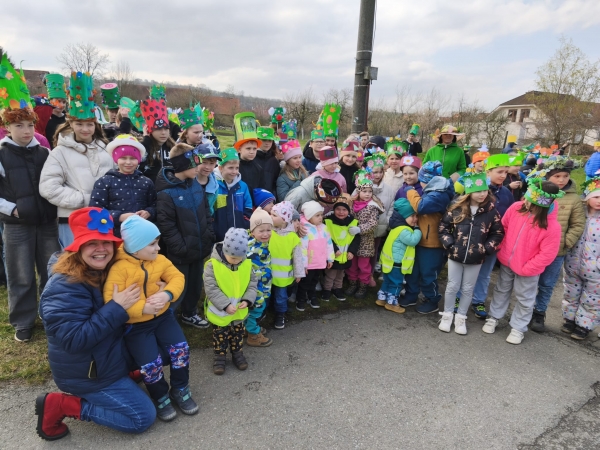 V den průvodu jsme se společně vydali na procházku vesnicí. Barevný zástup rozesmátých dětí v nápaditých kloboucích přilákal pozornost kolemjdoucích, kteří nás odměňovali úsměvy i milými slovy. Celá akce se nesla v radostné atmosféře, která krásně podtrhla příchod jara i blížící se velikonoční svátky.