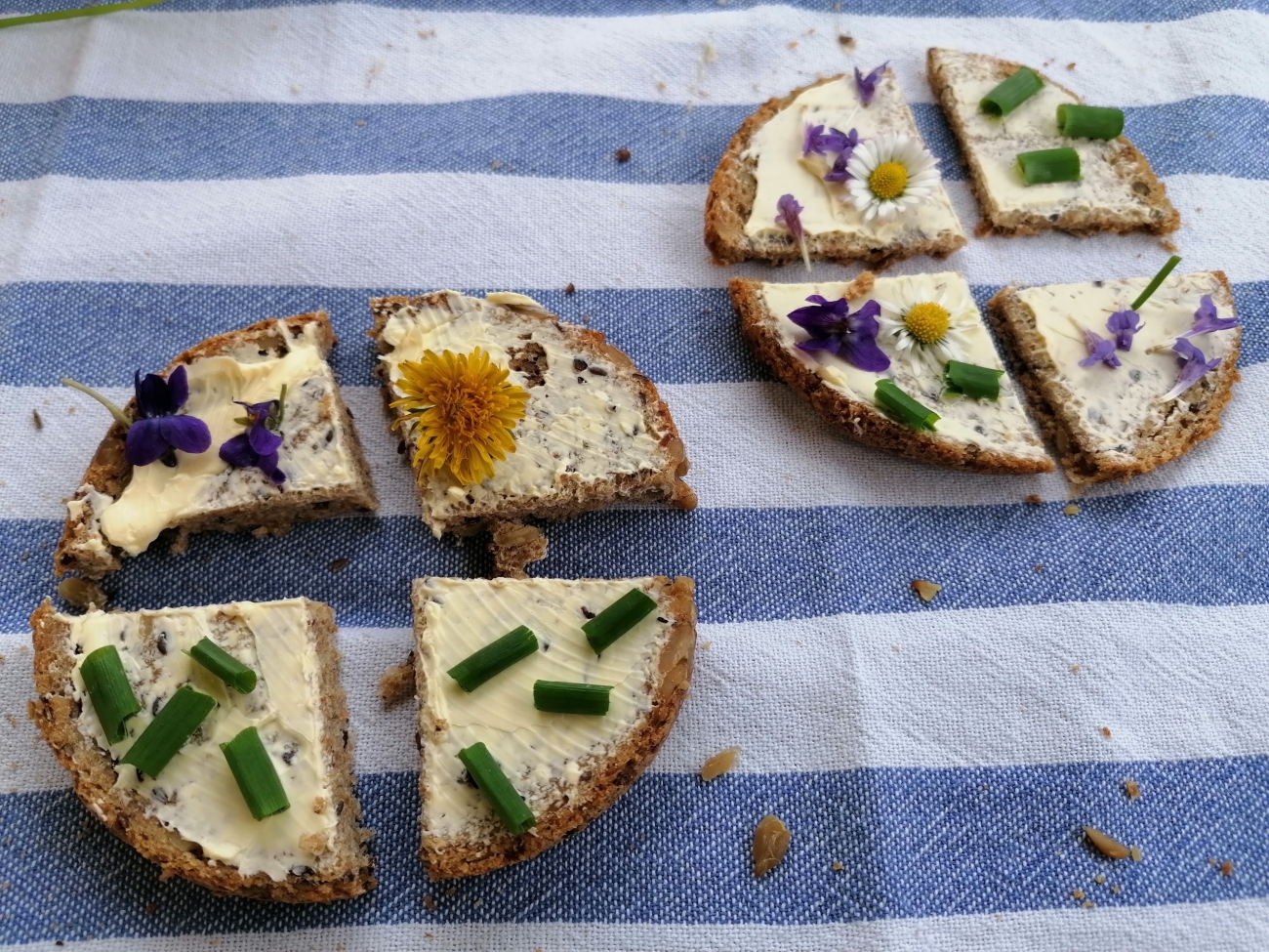 S dětmi se učíme poznávat jedlé květy a kuchyňské bylinky. Využili jsme k tomu bylinkovou zahrádku na školní zahradě. A také jedlých květů máme plnou zahradu. Stačil už jen chléb s máslem a piknik mohl začít. A že nám všem moc chutnalo :-)))