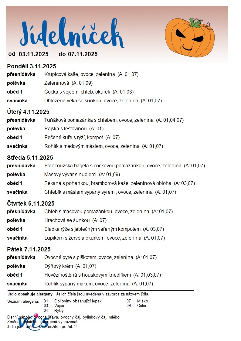 Jídelní lístek ZŠ