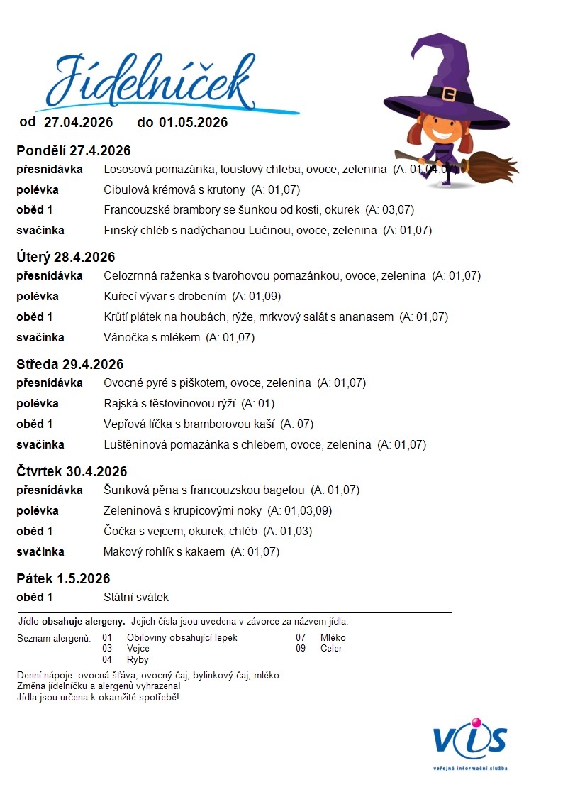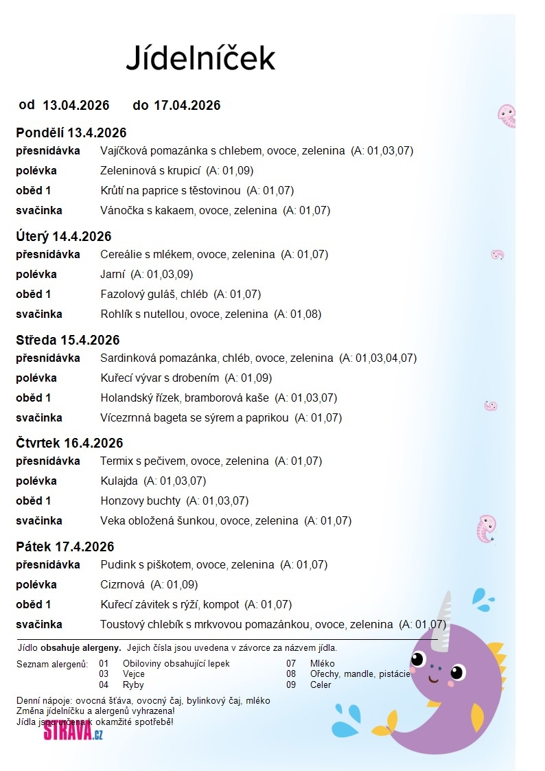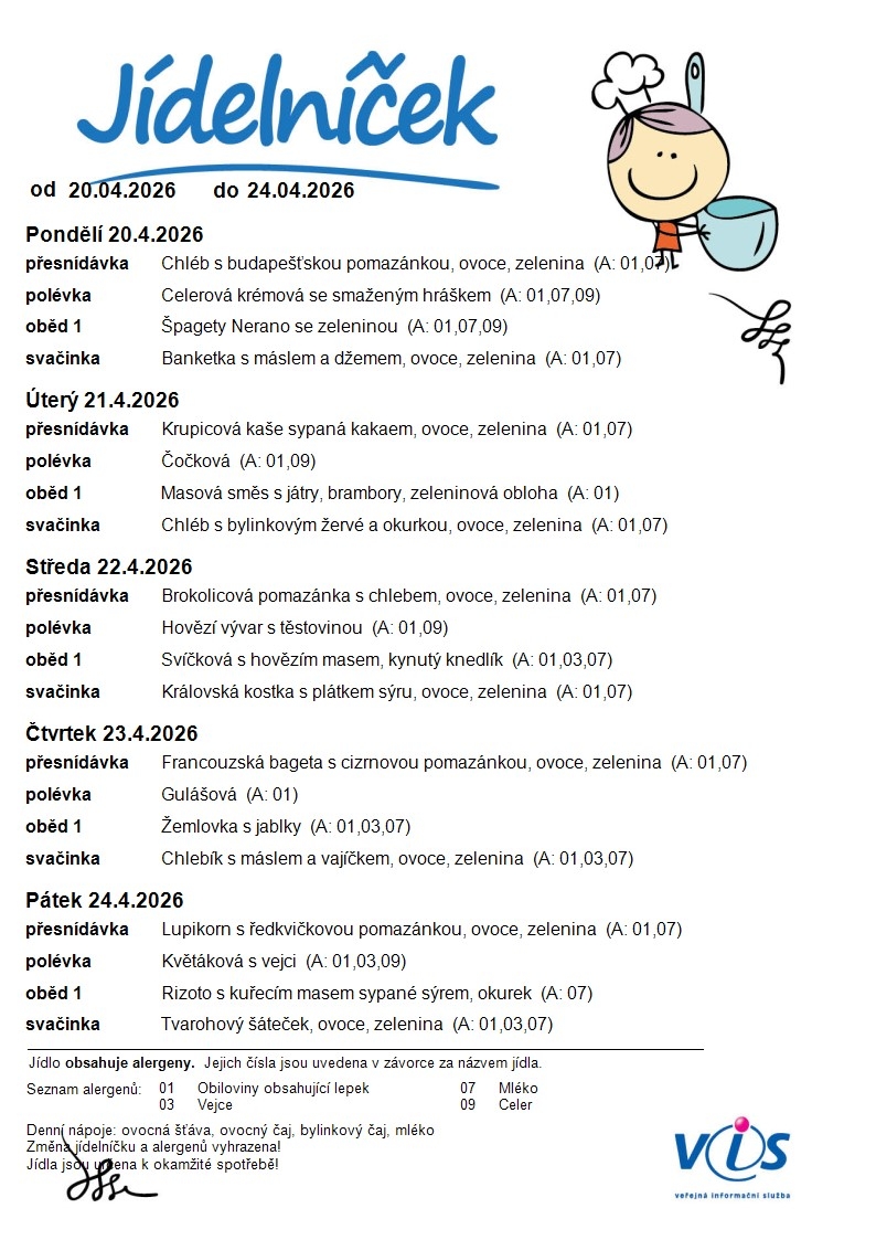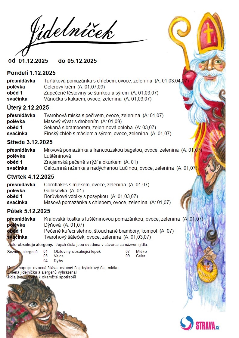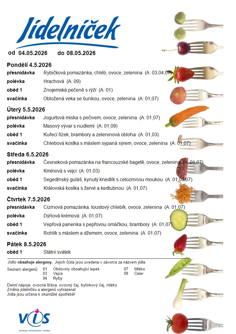 Jídelní lístek MŠ