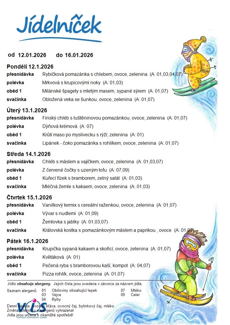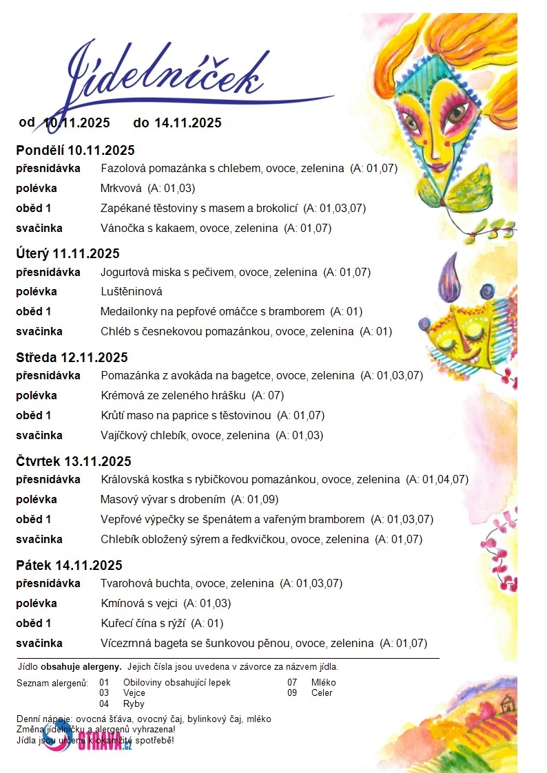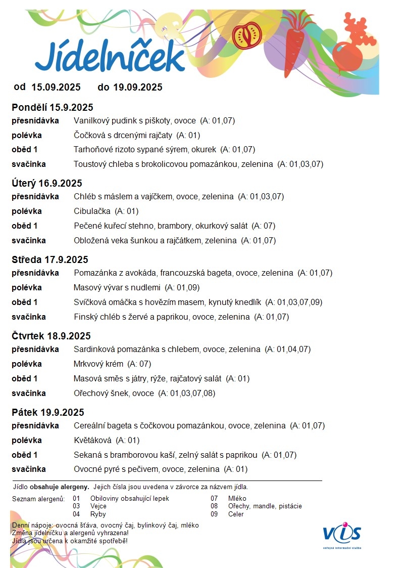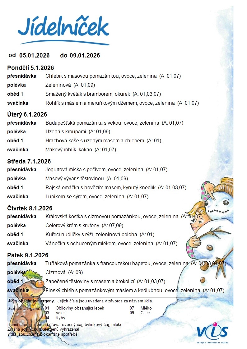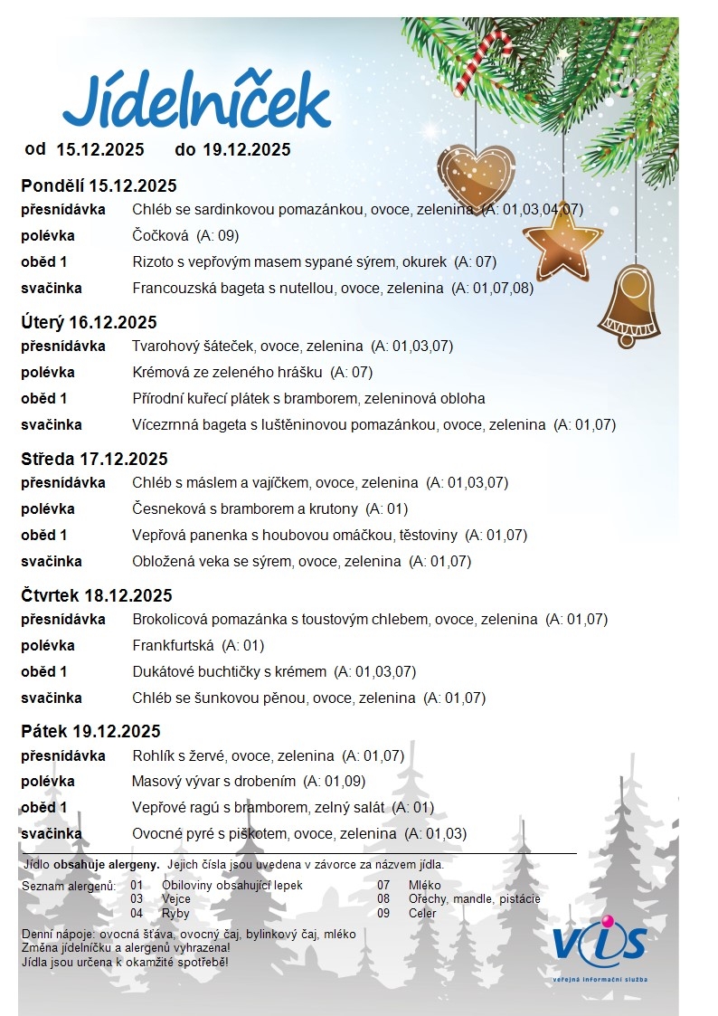 Jídelní lístek MŠ