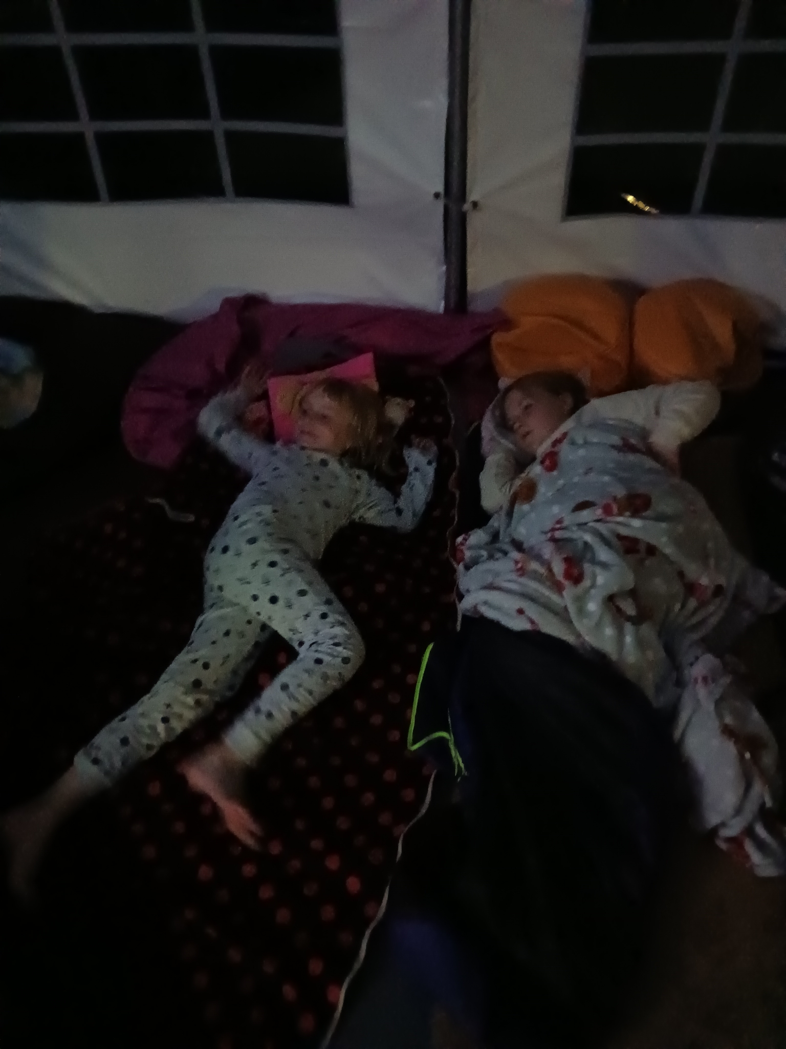 Nechyběl ani táborák, který nám hasiči rozdělali, opekli jsme si špekáčky, a když se setmělo, děti ulehly do spacáků a usínaly u pohádky :-)