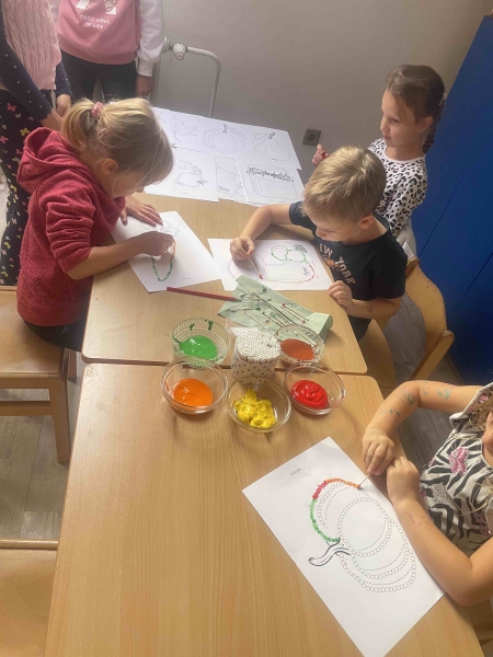 I v letošním školním roce pokračujeme v programu návštěv předškoláků v naší základní škole. Smyslem těchto setkání je usnadnit dětem přechod z mateřské školy do prostředí školy základní a podpořit jejich hladkou adaptaci. Úterní dopoledne 30.9. si pro budoucí školáky připravili program žáci 4. třídy. Na pěti stanovištích si předškoláci vyzkoušeli různé aktivity – procvičili si grafomotoriku a jemnou motoriku a naučili se i jednoduchou říkanku, která jim pomůže se správným úchopem tužky.