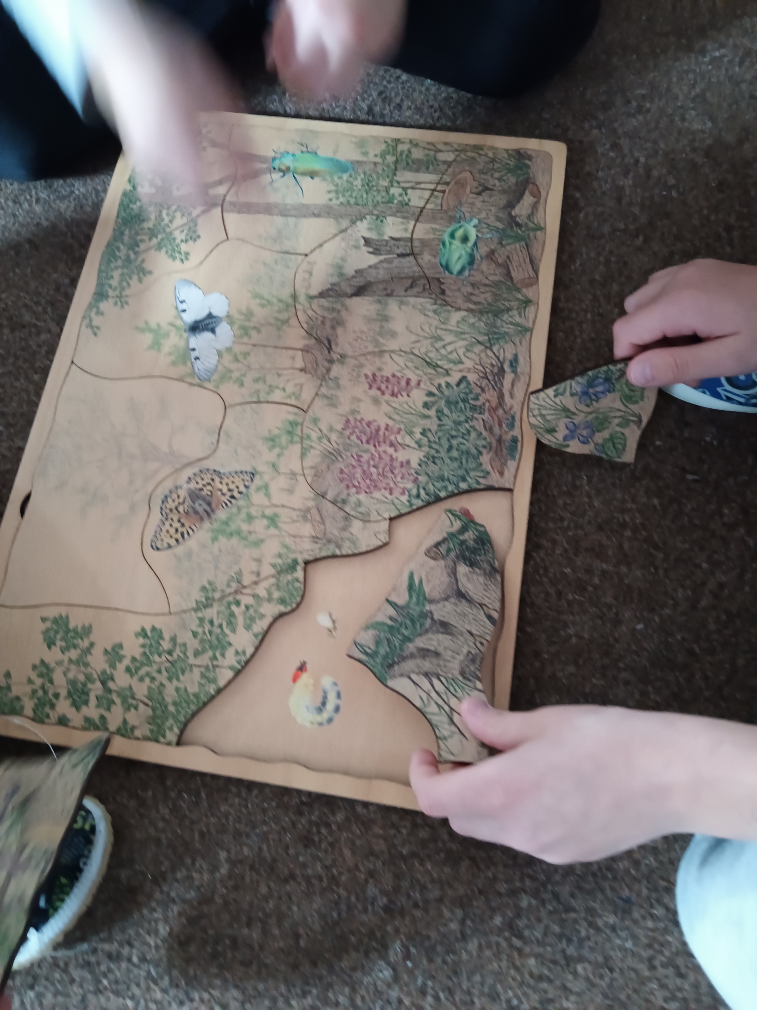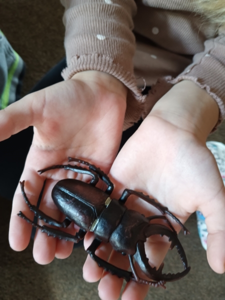 Během programu jsme prozkoumávali co všechno v našem lese žije, a dozvěděli jsme se mnoho zajímavostí ze života brouka roháče - například jak dlouho žije, k čemu používá svá velká kusadla a proč potřebuje k životu dostatek světla a mrtvého dřeva.