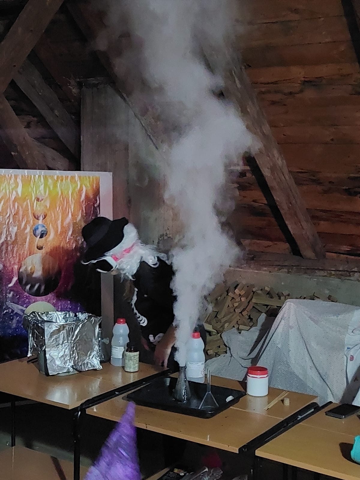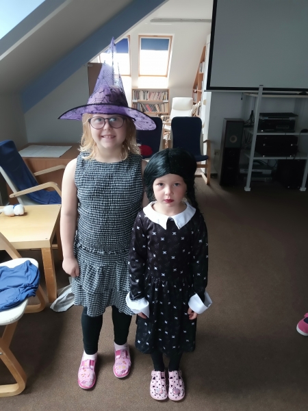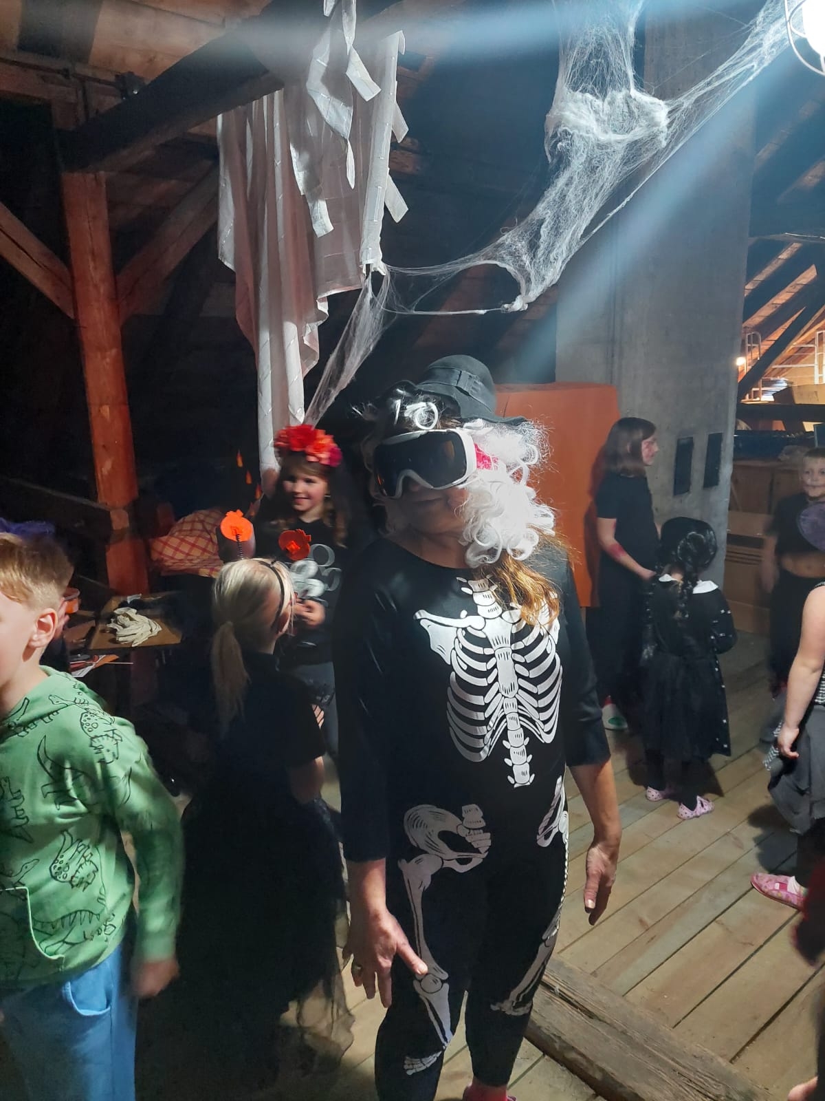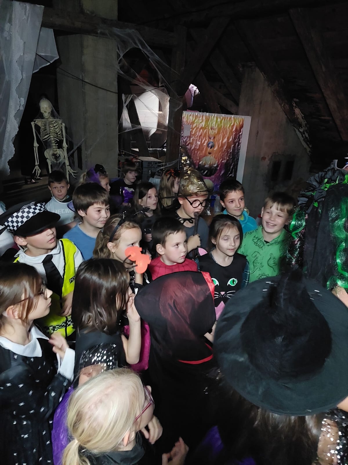 Letos nechyběla stezka s úkoly, pokusy s kostlivcem ani hra na mumie. O skvělou atmosféru se postarala halloweenská diskotéka, na kterou přišli i učitelé v kostýmech a společně s dětmi si zatančili halloweenský tanec :-)