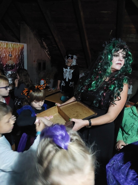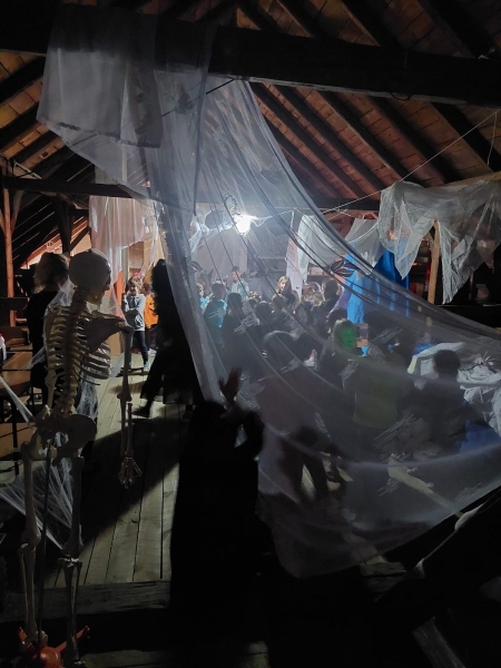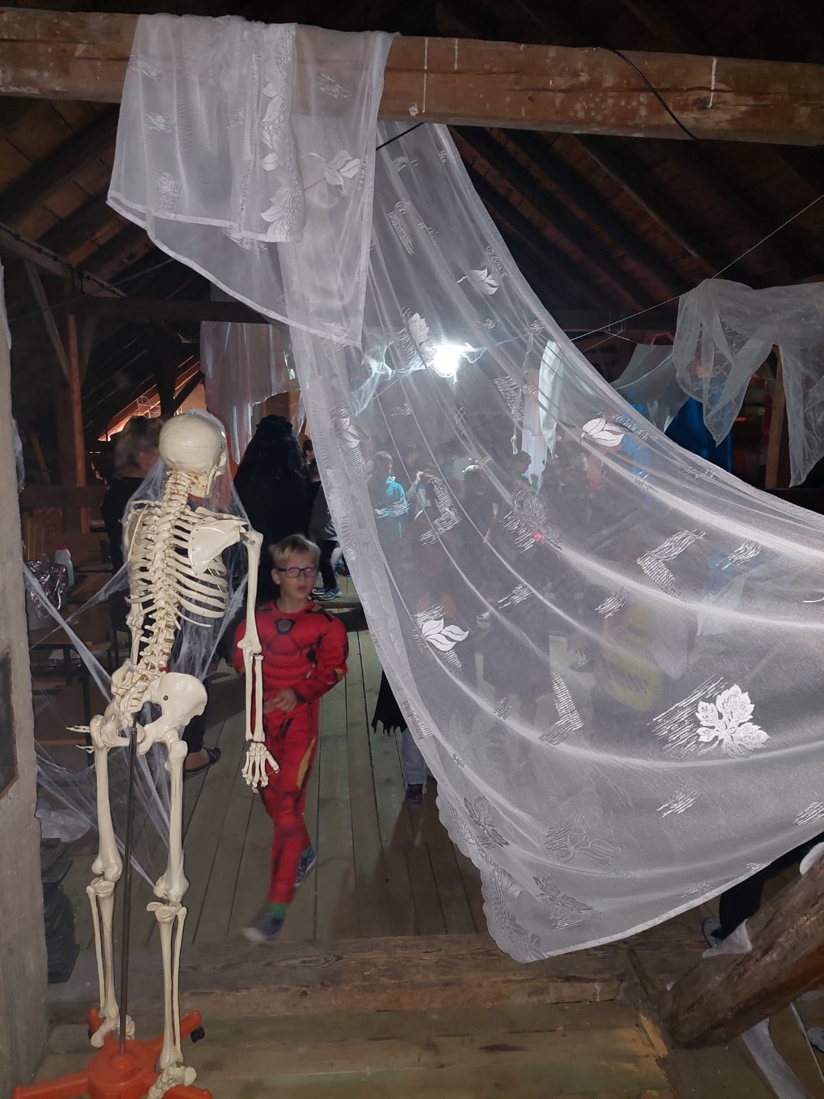 Halloween patří už tradičně k jedné z nejoblíbenějších akcí roku :-) a rozhodně to není jen obyčejná párty :-) letos dorazilo a velkým nadšením 46 dětí = 46 různých kostýmů :-) Celé odpoledne se odehrává na půdě, která se promění v tajemně strašidelný prostor plný světýlek, pavučin, koster a kostí a tajemných koutů :-)