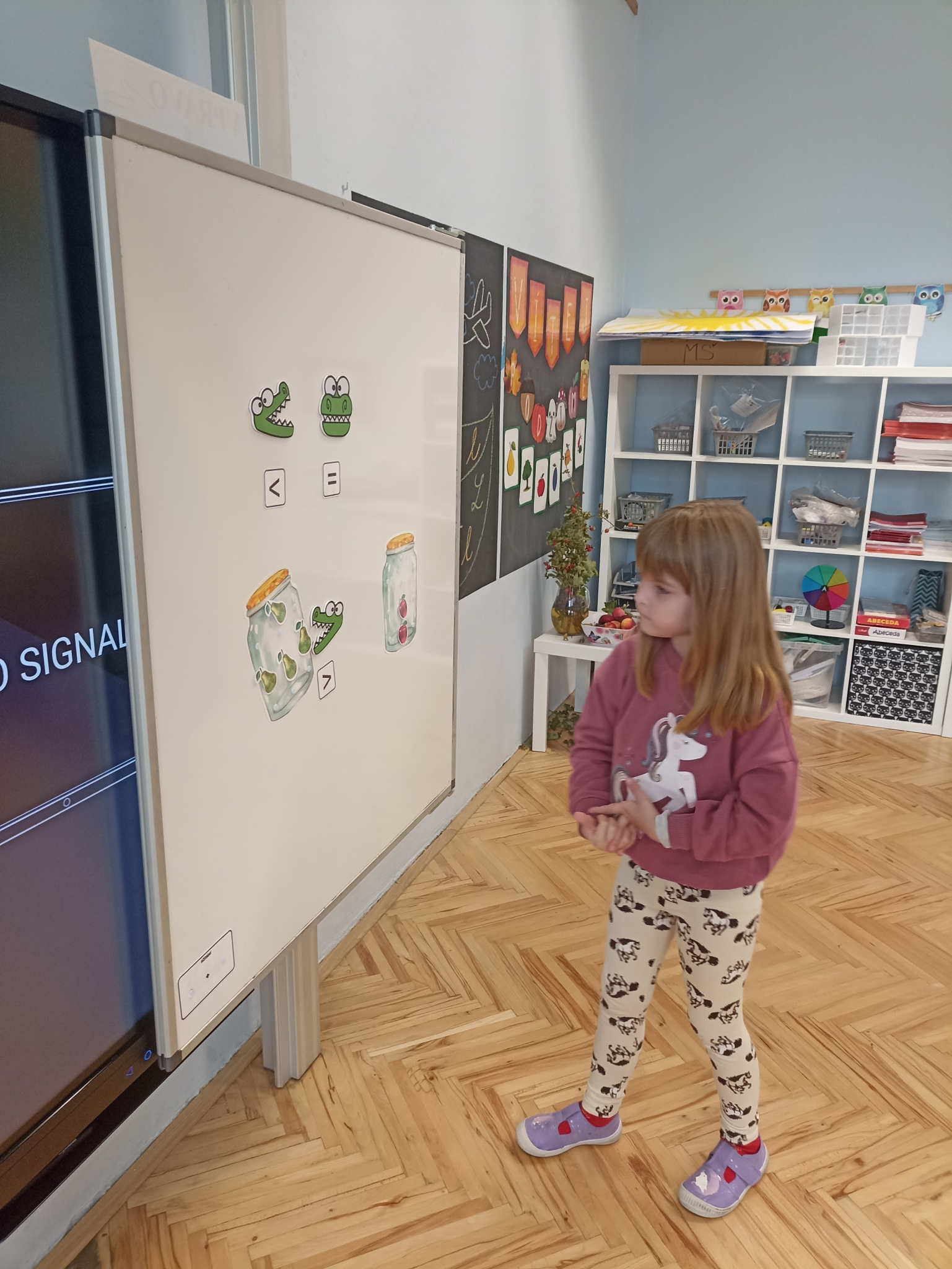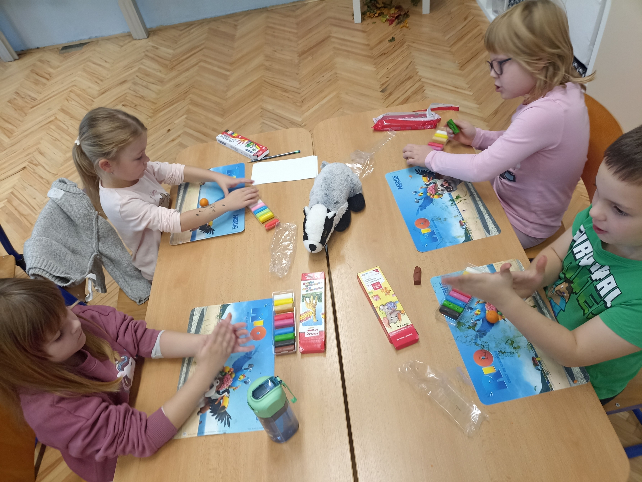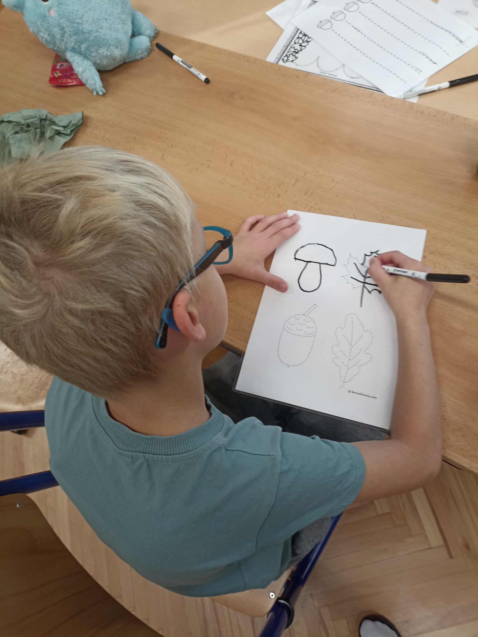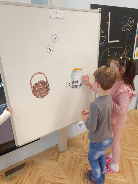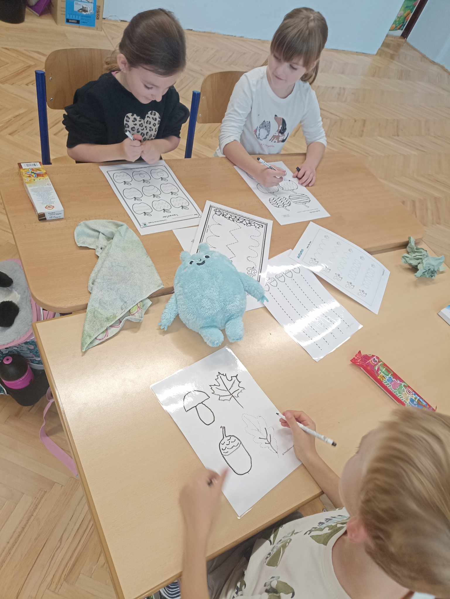 V první třídě jsme si užili podzimně laděné dopoledne. V centrech aktivit jsme pracovali na stanovištích se zvířátky - s veverkou jsme rozvíjeli jemnou motoriku skládáním kaštanů, s liškou jsme určovali množství podzimních objektů dle předlohy, s jezevcem tvořili podzimní plody z plastelíny a s Apu se zdokonalovali v grafomotorice. Ve skupinách jsme se hravou formou seznamovali s matematickými pojmy porovnávání a sčítání, trénovali programování s Bee-boty, přičemž jsme poznávali zpracování podzimního ovoce, opakovali roční období a nakonec si pochutnali na podzimním ovoci. Podzim nám tak ukázal, že učení může být stejně pestré a voňavé jako samotná podzimní příroda.