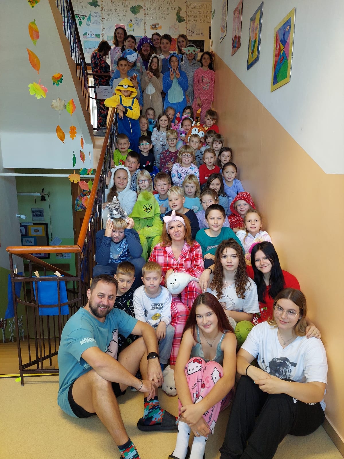 Děti i dospělí přišli v pyžamech, županech a chlupatých ponožkách a společně jsme tak ukázali, že na nemocné děti myslíme a chceme jim poslat kousek síly a naděje :-)