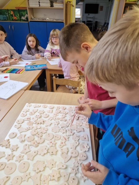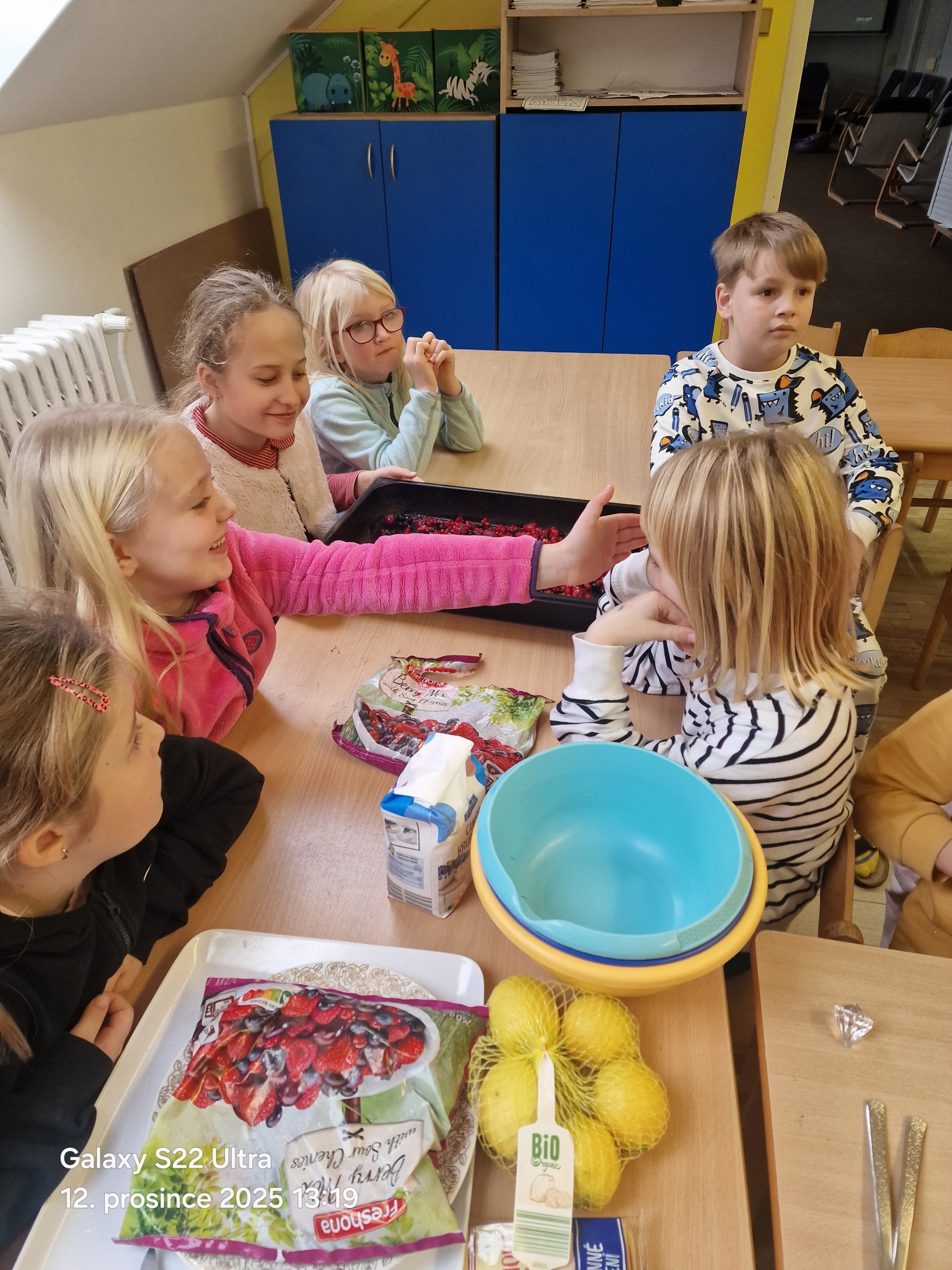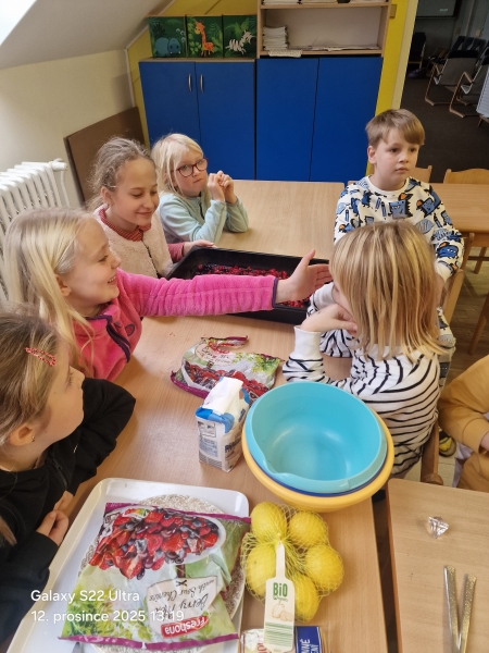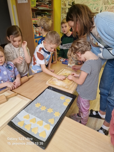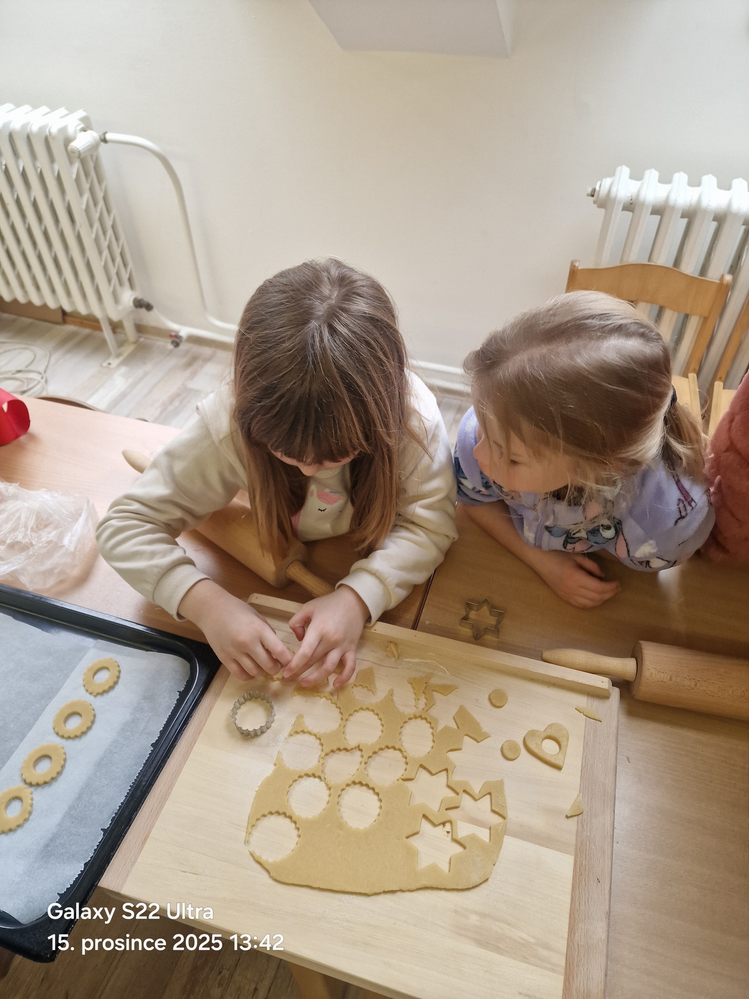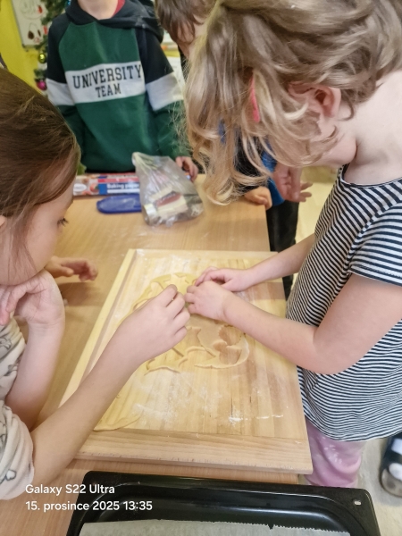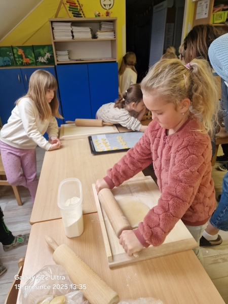 Nechyběly ani oblíbené adventní činnosti - děti si s nadšením připravily pečený čaj a s velkou pečlivostí pekly linecké cukroví.