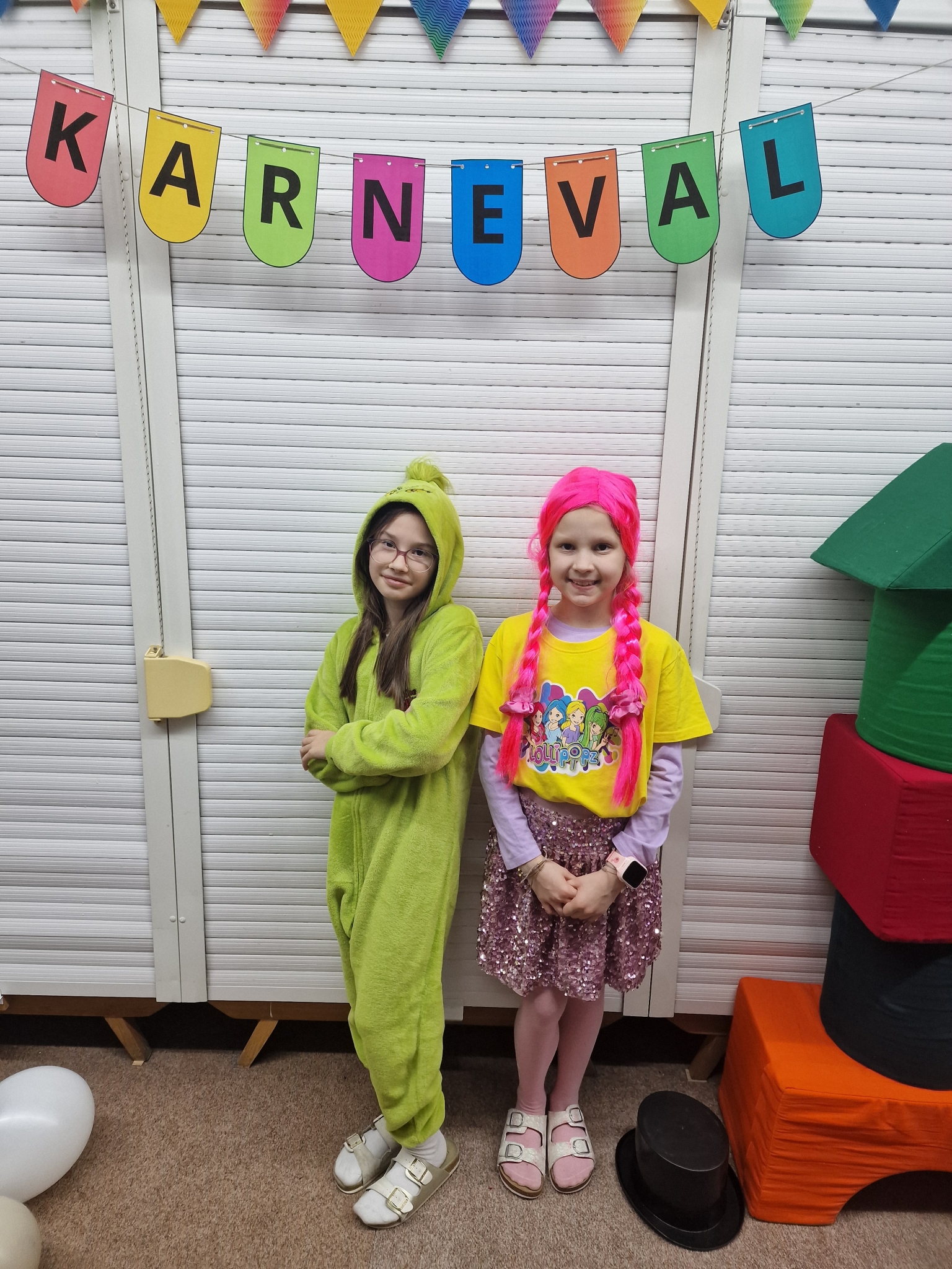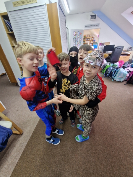 Ve středu 11. února bylo ve škole od samého rána veselo :-) Chodbami i třídami na prvním stupni se pohybovaly princezny, superhrdinové, zvířátka, sportovci i další nápadité masky. Děti si karnevalový den užívaly naplno - v kostýmech se i učily a odpoledne už hurá do družiny, kde vypukly pravé karnevalové radovánky :-)