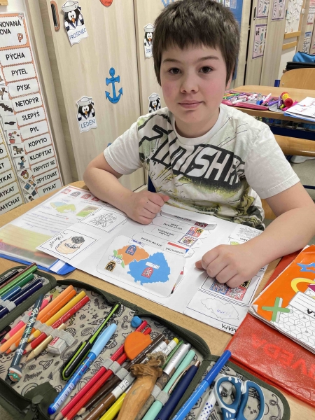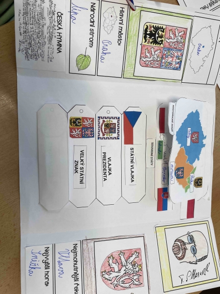 Žáci pracovali ve skupinách i samostatně a postupně zpracovávali základní informace o naší vlasti. Do svých lapbooků zaznamenávali důležité údaje o České republice, jako je hlavní město, státní zřízení či sousední státy. Nechyběla ani kapitola věnovaná státním symbolům – státní vlajce, znaku, hymně, pečeti a prezidentské standartě.