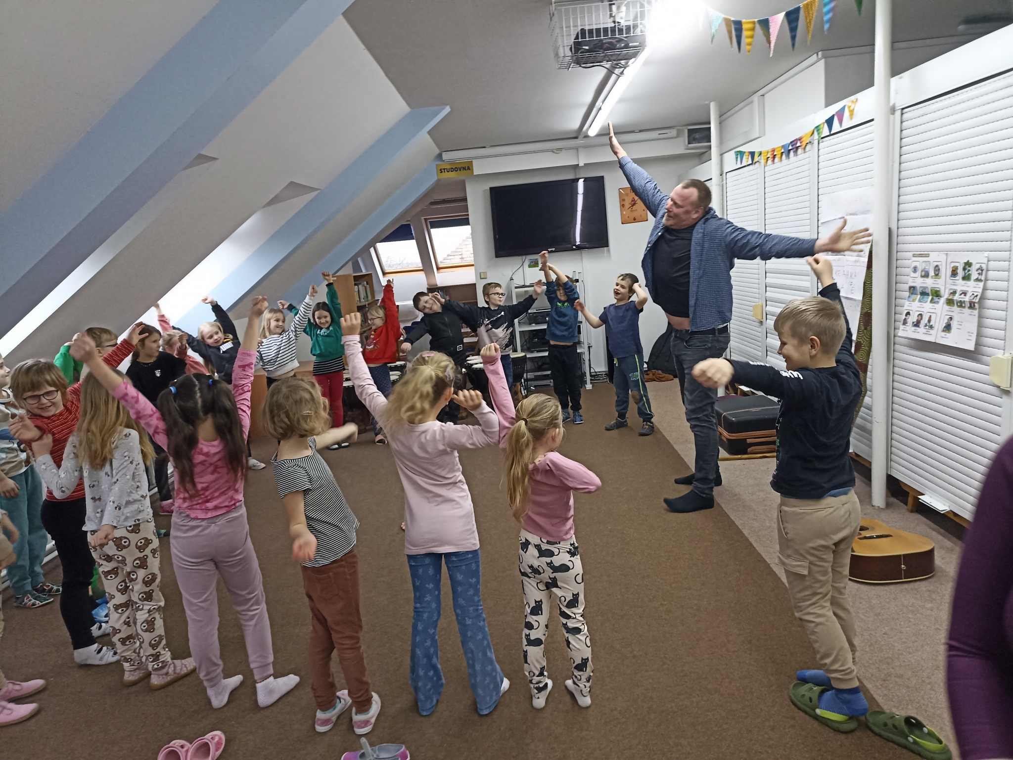 Děti se během programu vydaly na hudební cestu kolem světa a poznávaly různé kultury prostřednictvím rytmu, pohybu a zpěvu. Vyzkoušely si hru na africké bubny a objevily kouzlo australského nástroje didgeridoo. Nechyběly ani pohybové a rytmické hry, při kterých bylo potřeba zapojit nejen tělo, ale i spolupráci a pozornost.