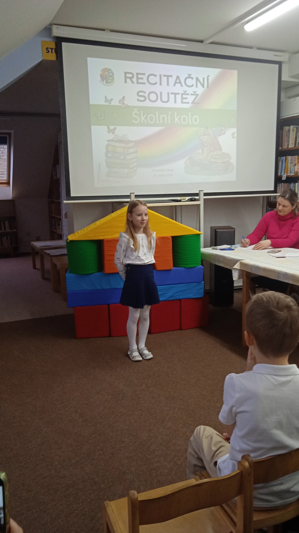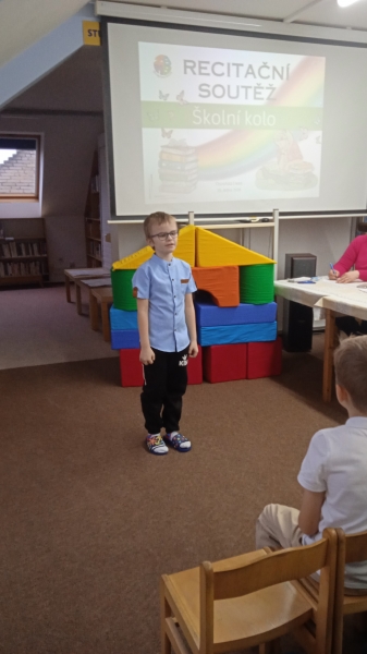 Dne 29. ledna 2026 se naše škola naplnila zvuky veršů a radostí z poezie. Konalo se školní kolo recitační soutěže, kterého se s nadšením zúčastnili žáci I. a II. třídy. Děti potěšily své spolužáky i pedagogy svým přednesem a nadšením pro dětskou poezii a celá třída se na chvíli proměnila v prostor plný fantazie, rytmu a smíchu.