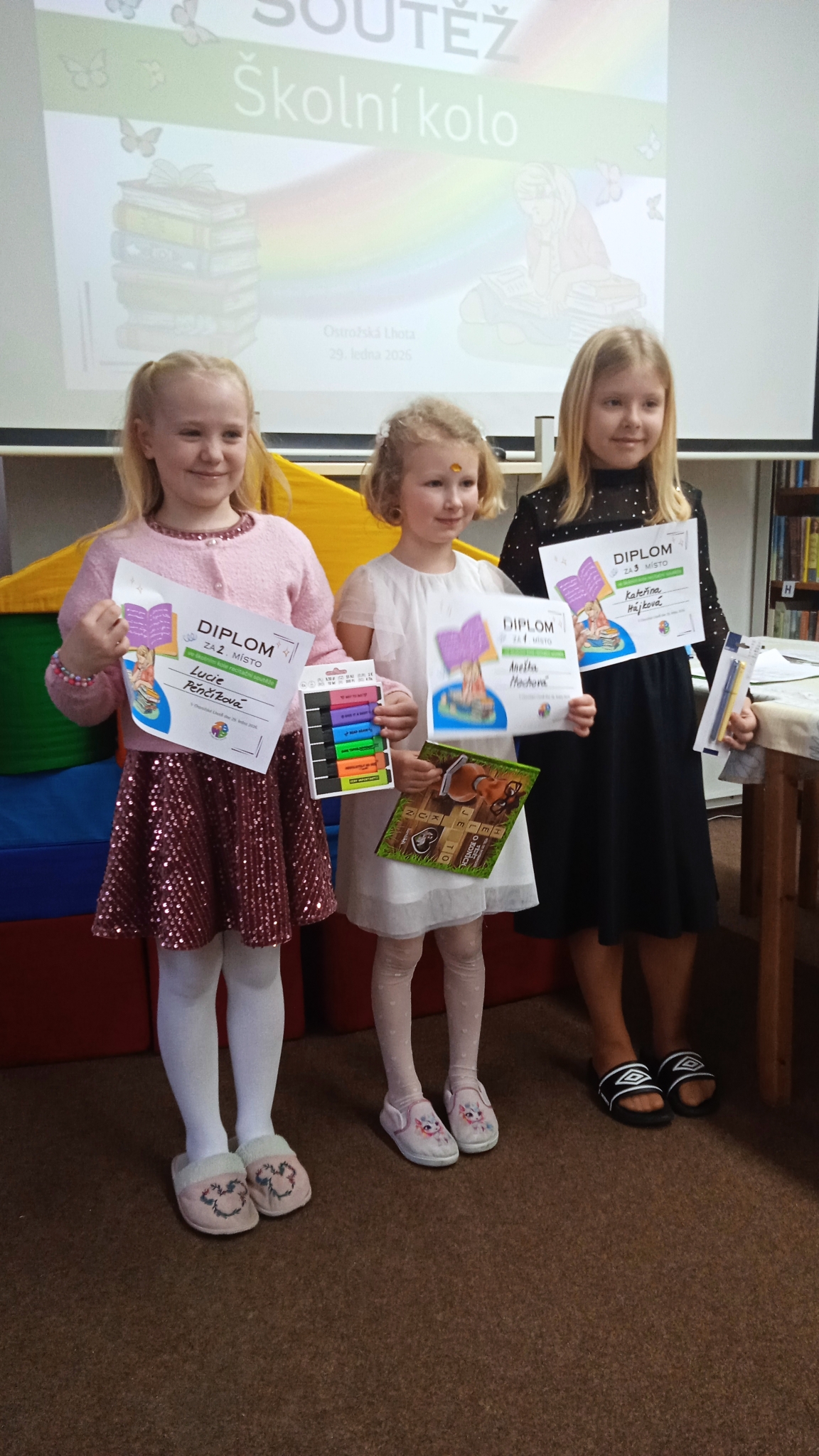 Na závěr si všichni účastníci odnesli zasloužený diplom, který připomíná jejich odvahu a snahu prezentovat svůj talent před publikem. Celá akce připomněla, jak krásná a živá může být dětská poezie, a podpořila lásku k přednesu, rytmu slov a hravému vyjadřování myšlenek.