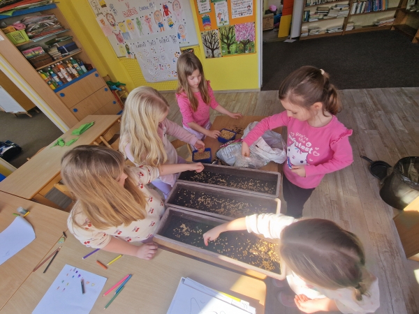 Na závěr týdne jsme si kousek jara přenesli i do družiny. Zasadili jsme si jarní osení do truhlíků a teď už budeme sledovat, jak nám pod rukama poroste naše malé jarní pole :-)