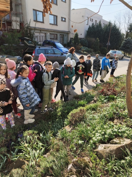 Jaro klepe na dveře a my jsme se rozhodli mu jít naproti po svém :-) Pustili jsme se do bádání s názvem "Hledáme jarní veselé barvičky " :-) Vyrazili jsme ven, kde jsme v zahrádkách u domů objevovali první jarní květiny a učili se je poznávat.