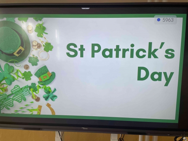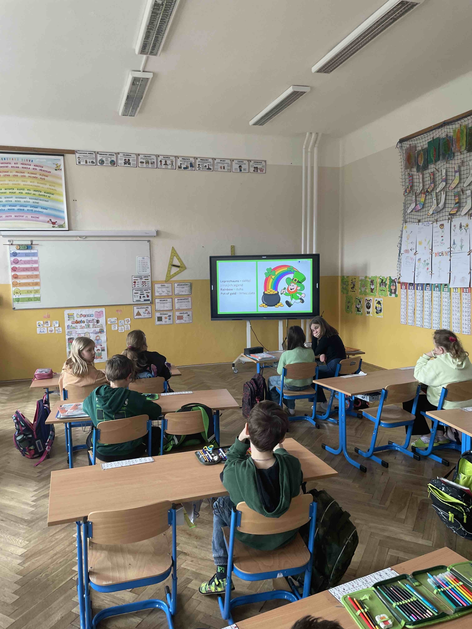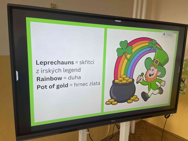 Dne 17. března jsme si v hodině angličtiny připomněli Den svatého Patrika. Společně jsme se seznámili se základními informacemi o tomto irském svátku a povídali si o jeho tradicích, jako je nošení zelené barvy nebo symbol trojlístku.